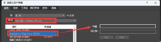 要进一步自定义(定义快捷键),该工具将显示在“自定义用户界面”对话框的“可编辑多边形对象”类别中的“正则化循环边(多边形)”下。