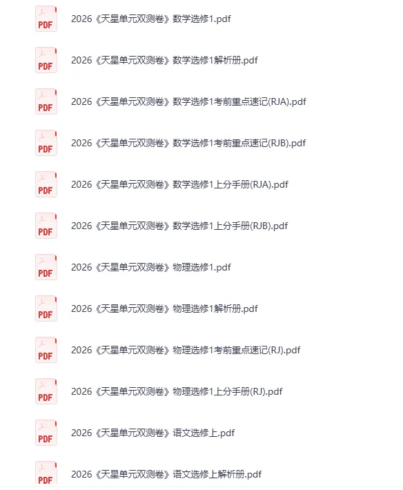 【免费下载附链接】2026版高中《天星单元双测卷》语数英物(教材同步版)选修1