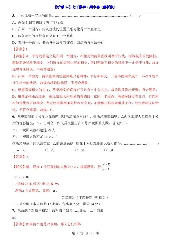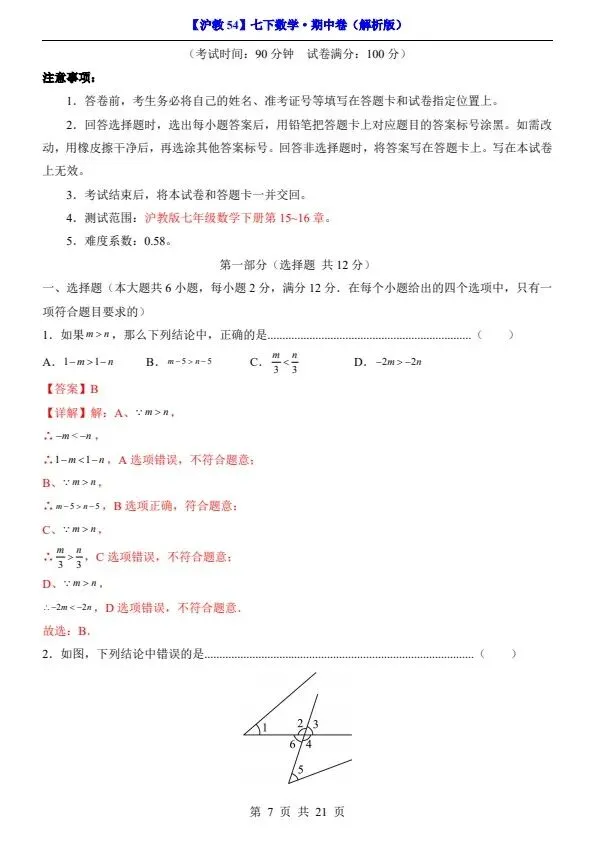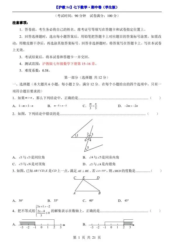 今日分享26春七年级下册沪教54版数学期中试卷(答案+答题卡)完整电子版可打印!所有资料均为高清电子版,排版规整适配打印,不用费心整理,直接打印就能用。精准击破学习难点,帮孩子夯实基础、吃透考点,稳步提升学习效率!