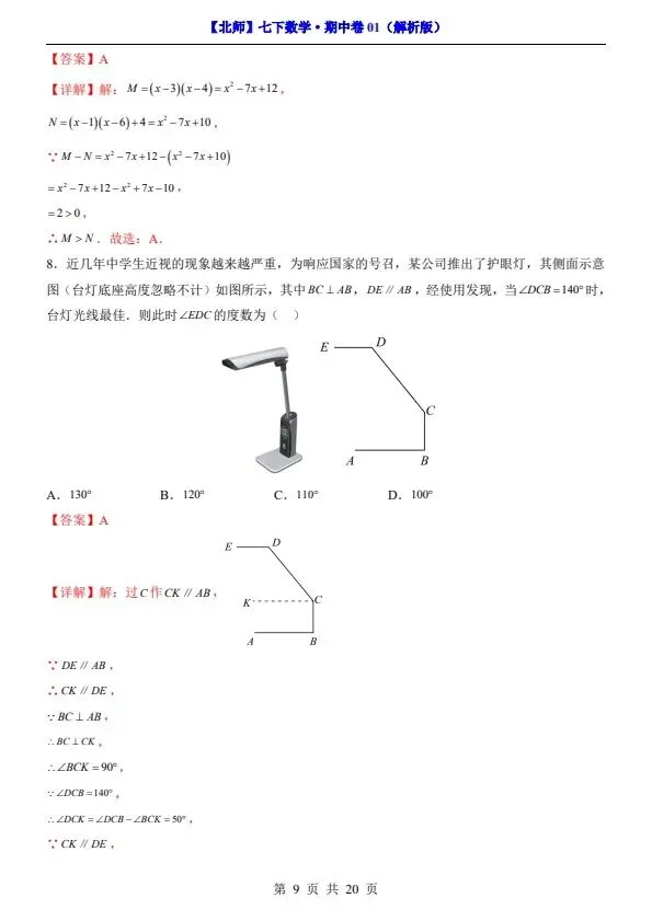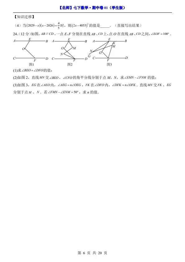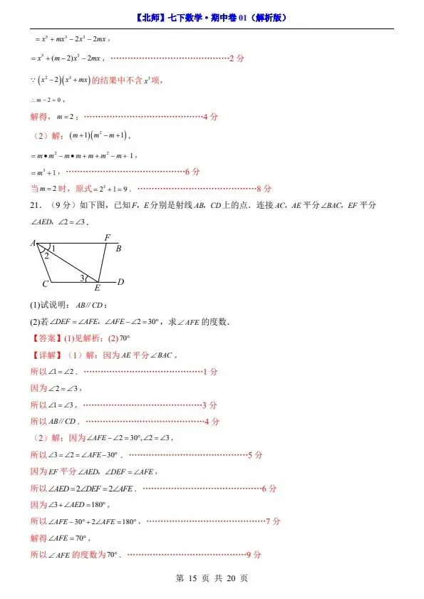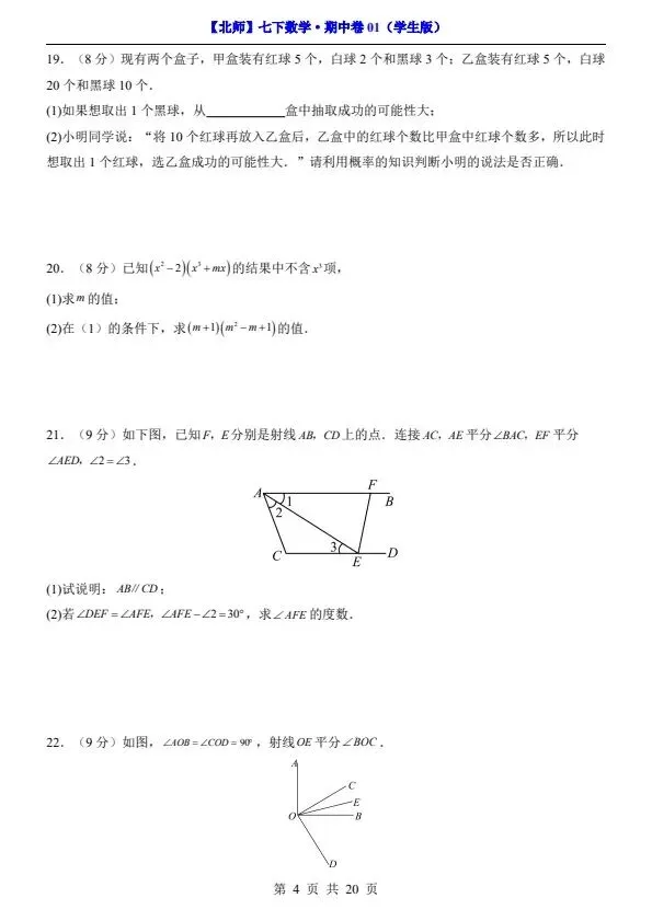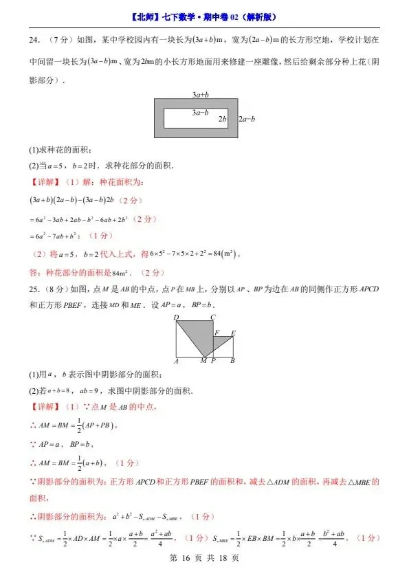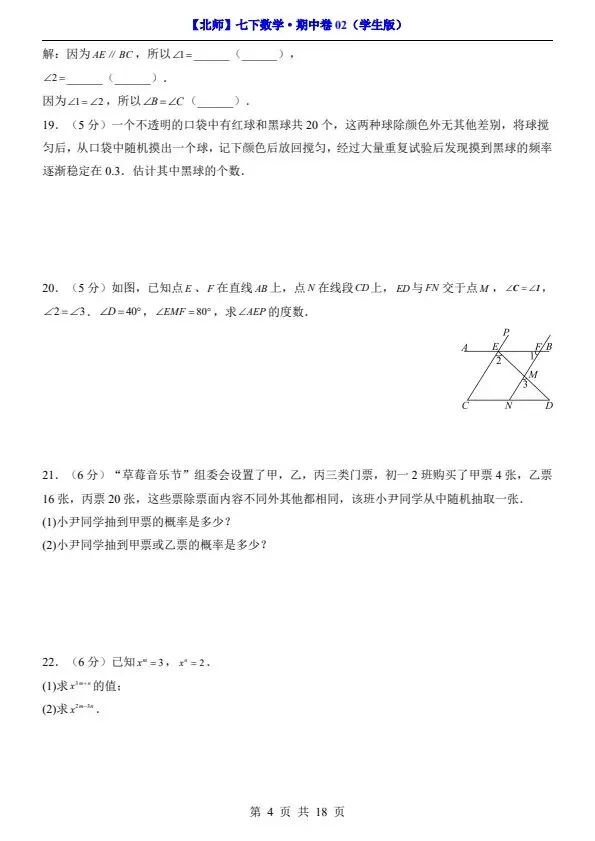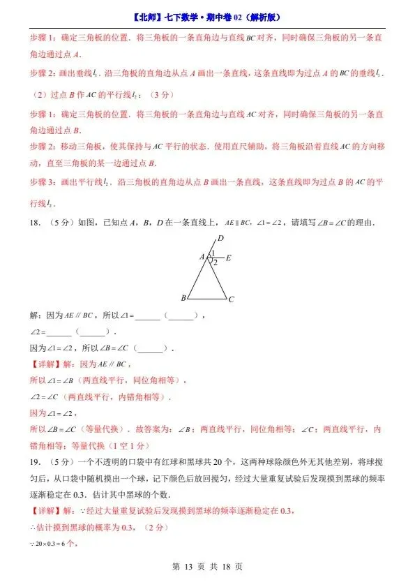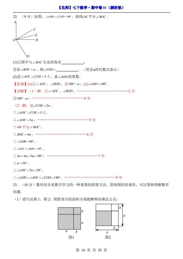 26新七下数学北师版期中试卷2套含答案+答题卡(完整电子版可打印)
