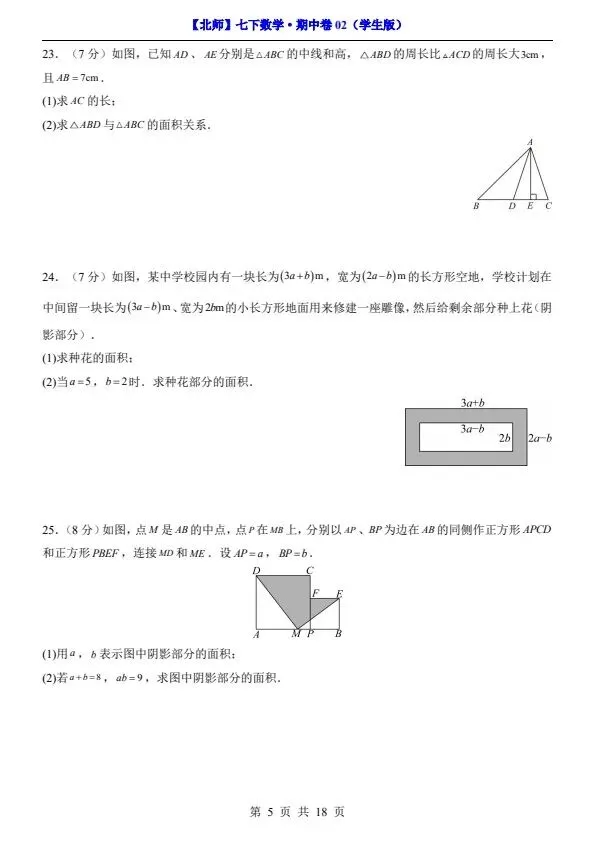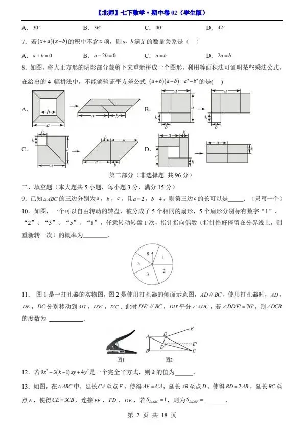 今日分享26新七下数学北师版期中试卷2套含答案+答题卡(完整电子版可打印)!所有资料均为高清电子版,排版规整适配打印,不用费心整理,直接打印就能用。精准击破学习难点,帮孩子夯实基础、吃透考点,稳步提升学习效率!