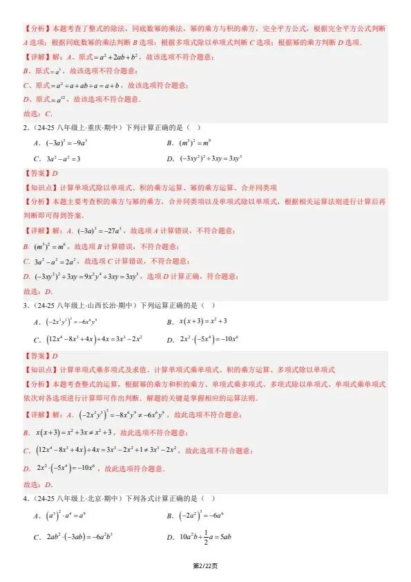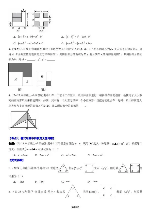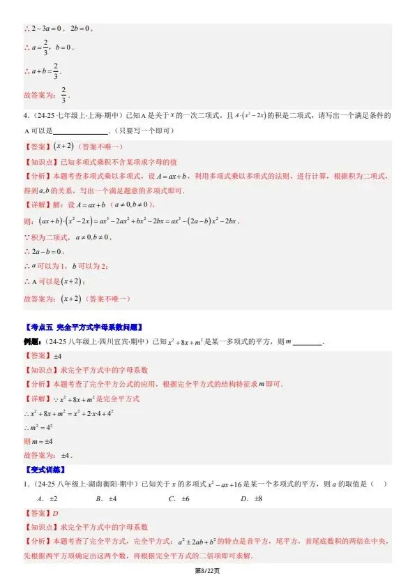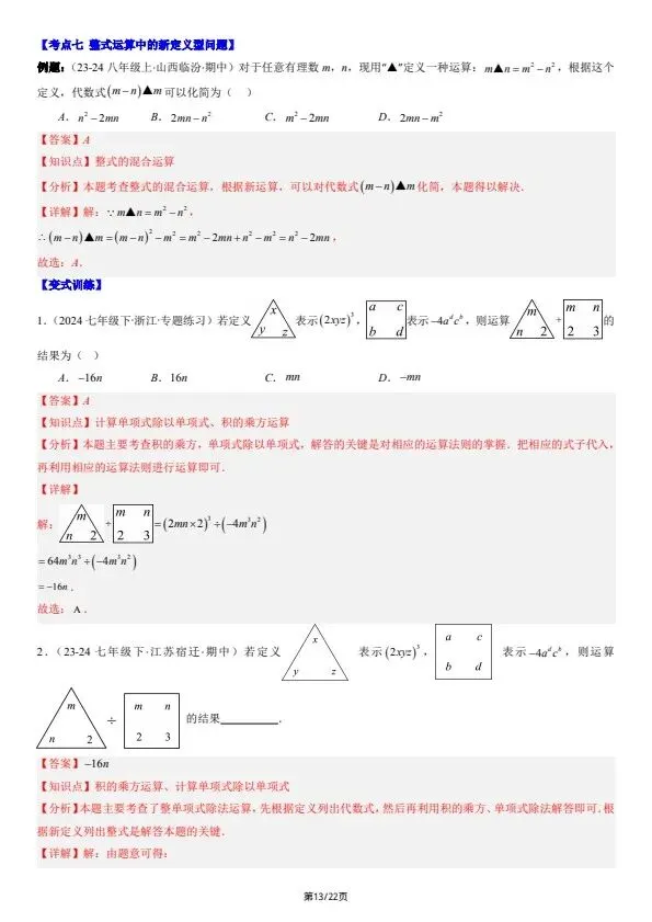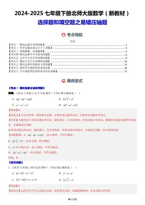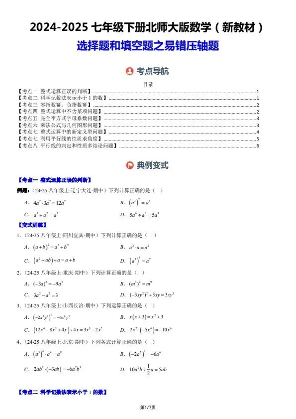 今日分享26新七下数学北师版期中复习:选择题和填空题·易错压轴题 8大常考题型(含答案)完整电子版可打印!所有资料均为高清电子版,排版规整适配打印,不用费心整理,直接打印就能用。精准击破学习难点,帮孩子夯实基础、吃透考点,稳步提升学习效率!