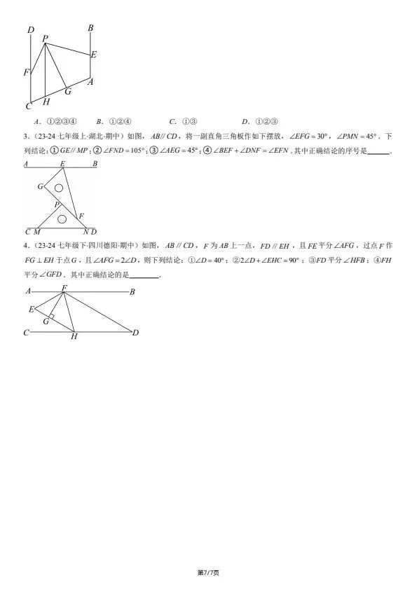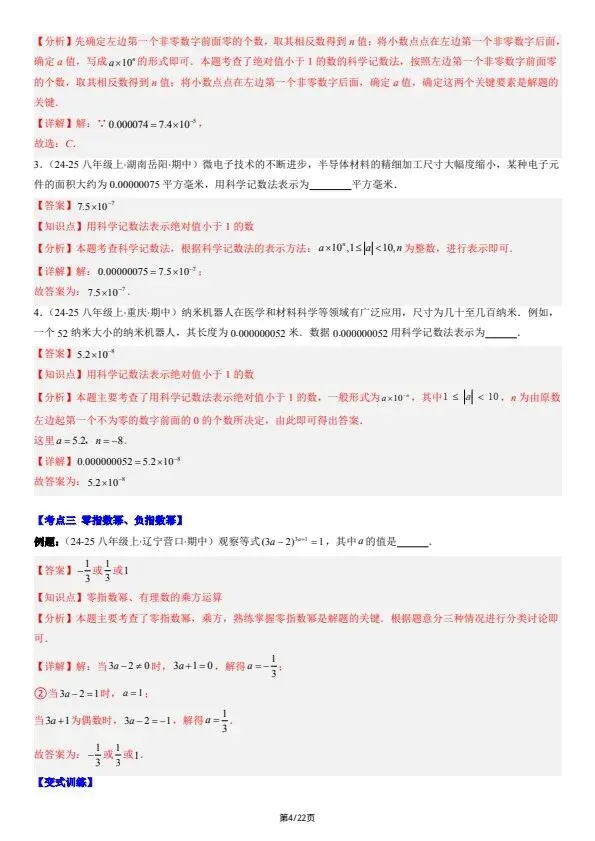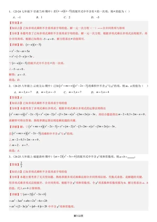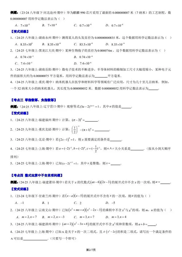 26新七下数学北师版期中复习:选择题和填空题·易错压轴题 8大常考题型(含答案)完整可打印