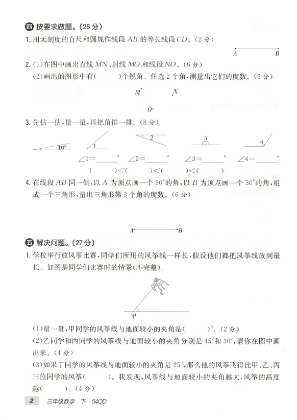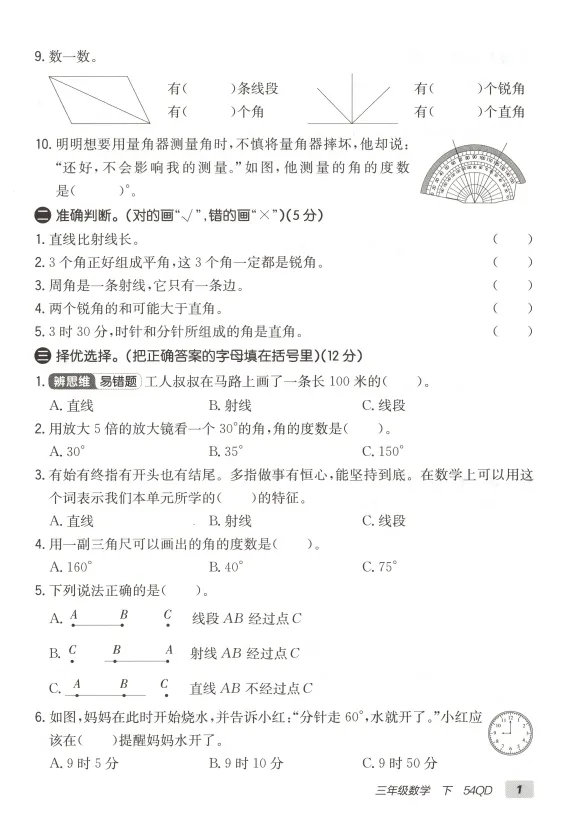 2025秋三年级上册数学(青岛版五四制)第一单元测试卷,电子版可打印