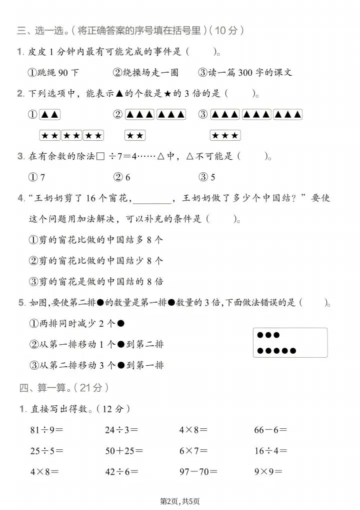 二年级下册数学期中测试卷|完整电子档可下载打印!
