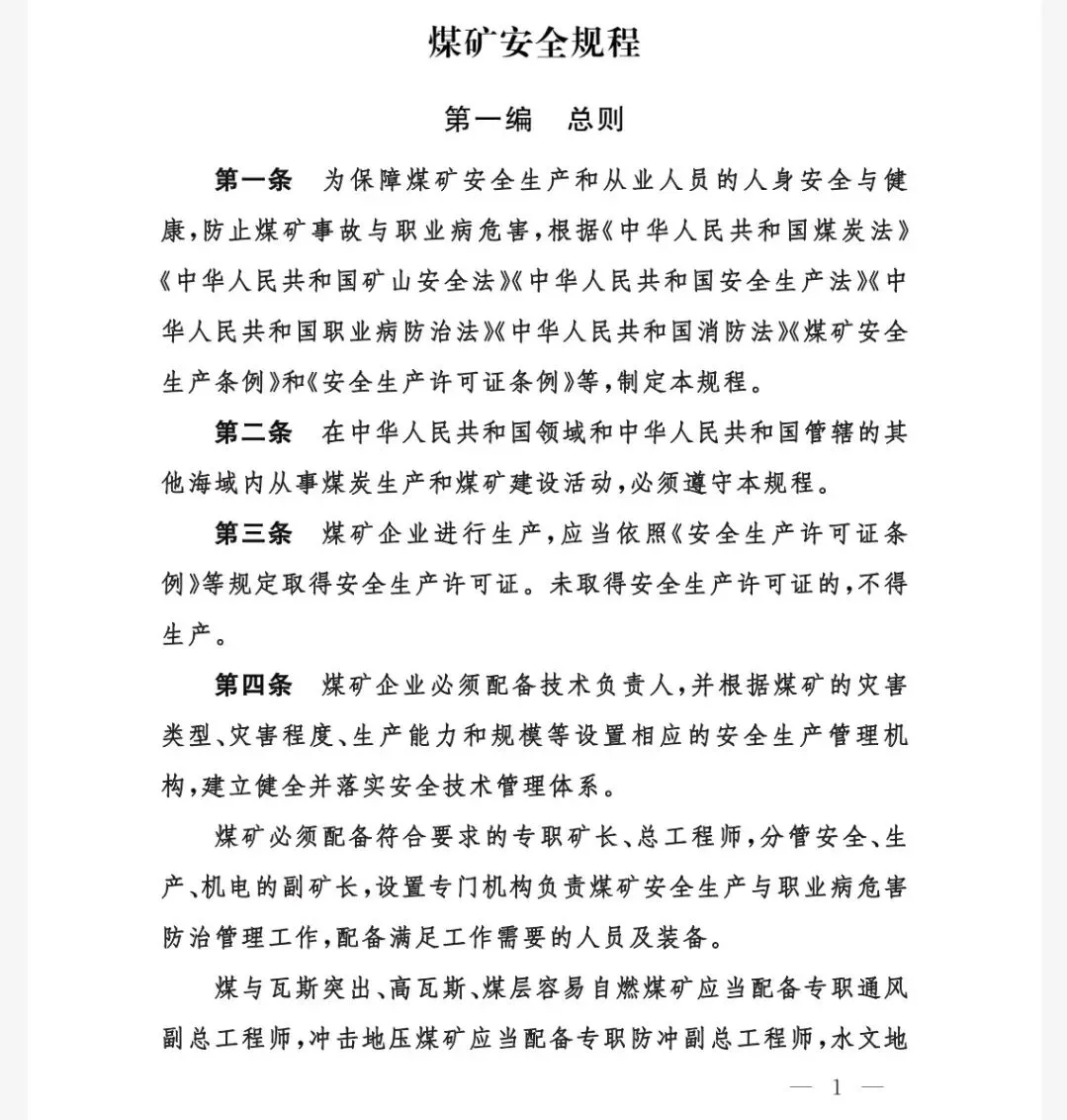 可获取PDF|《煤矿安全规程(2025年版)》296页,2026年2月1日起施行