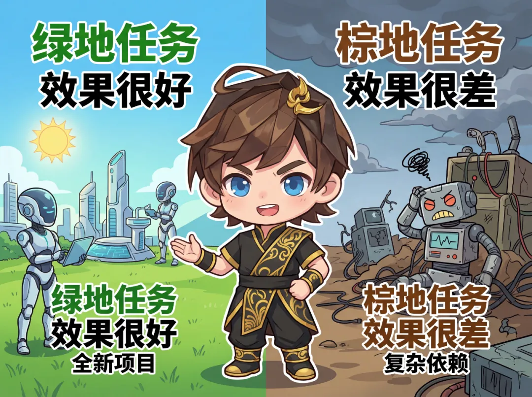 棕地(Brownfield)= 复杂既有项目,AI效果差甚至拖慢
