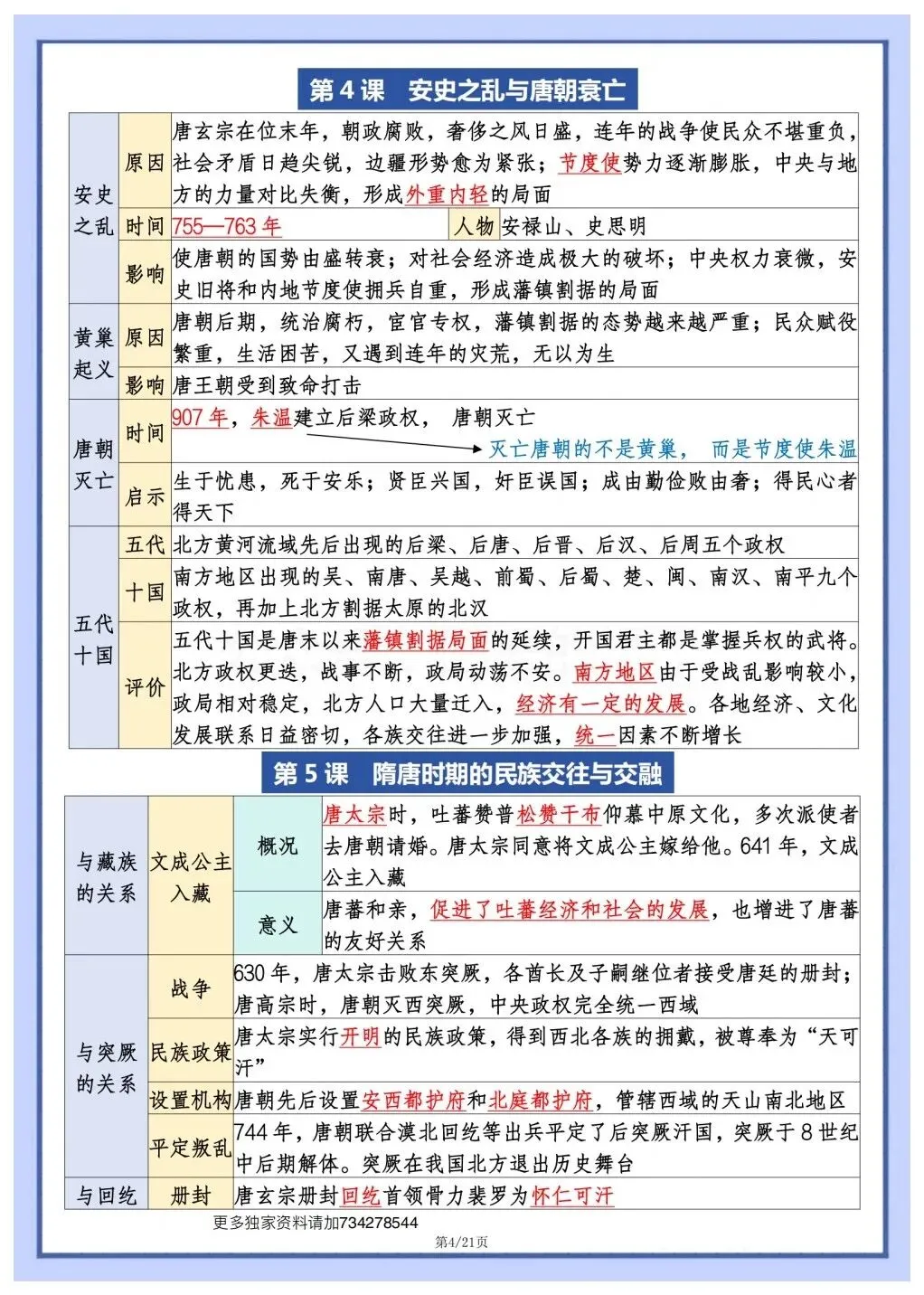 2026年春季新版七年级下册历史表格版知识要点提纲,可打印电子版!