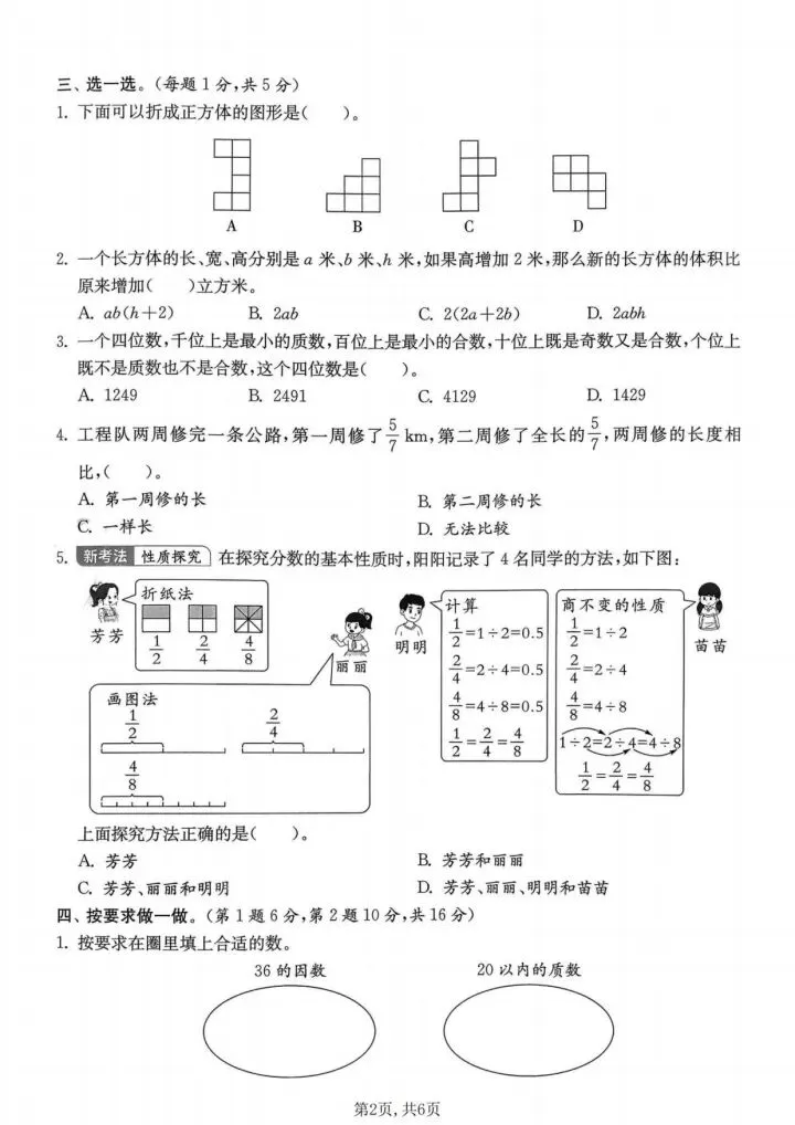 五年级下册数学期中测试卷|完整电子档可下载打印!