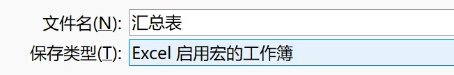 同时将汇总表另存为.xlsm格式,即:Excel启用宏的工作簿