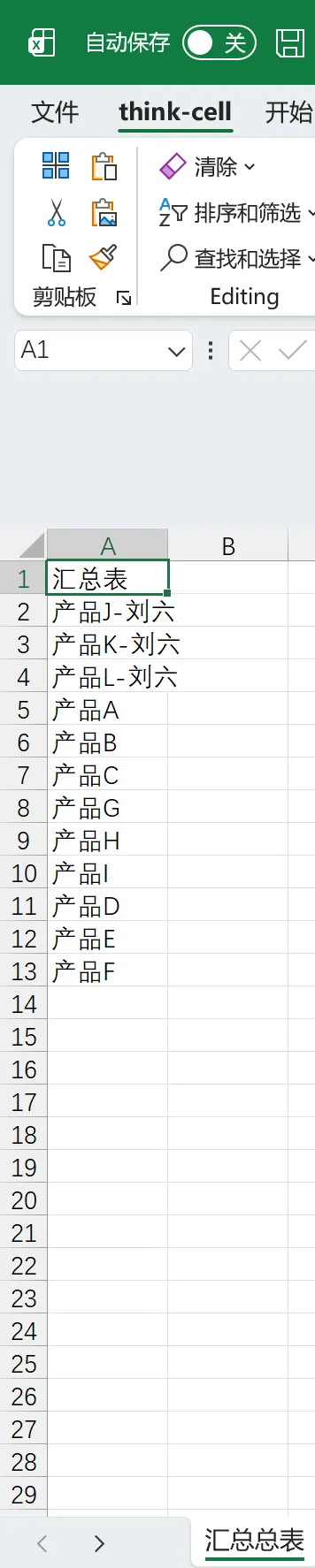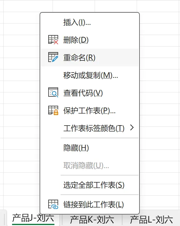 sheet名统一为:产品+字母,如:产品A,不加姓名、不加符号