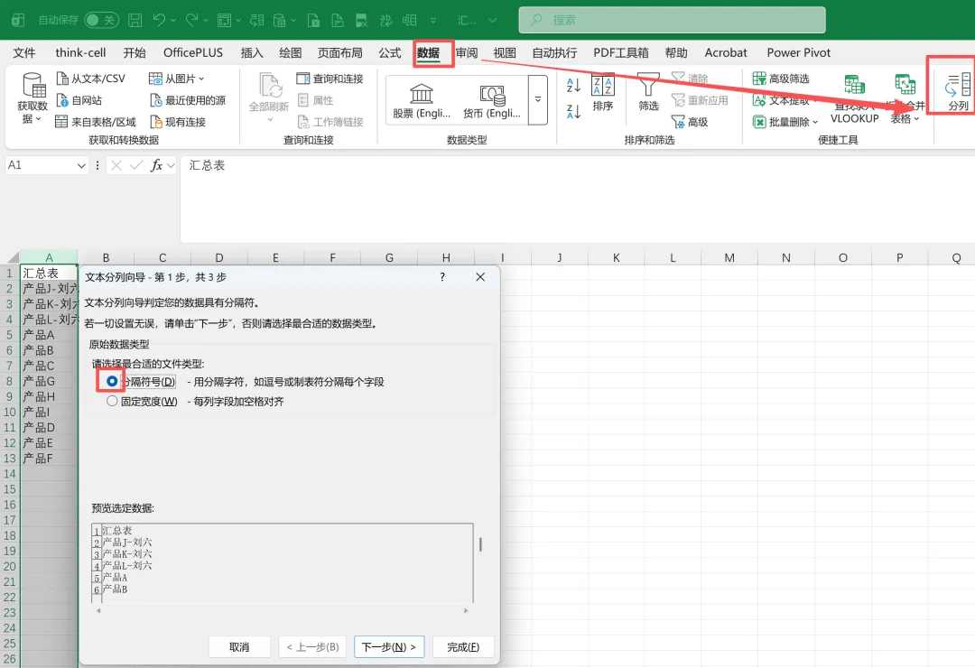 (1)Step3.1:汇总表-按分隔符号分列