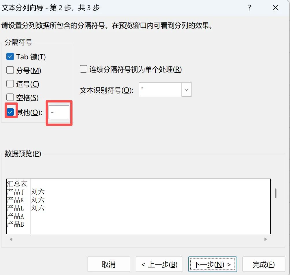 (2)Step3.2:汇总表-选择分隔符号