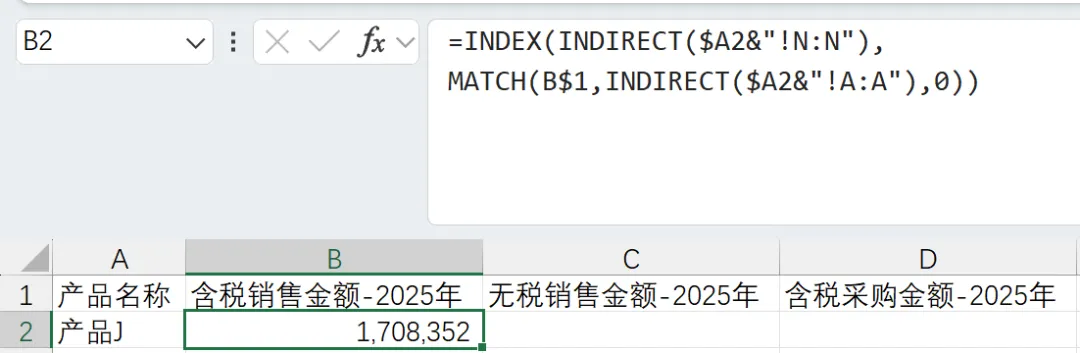 (1)标准取数公式(以B2单元格为例)