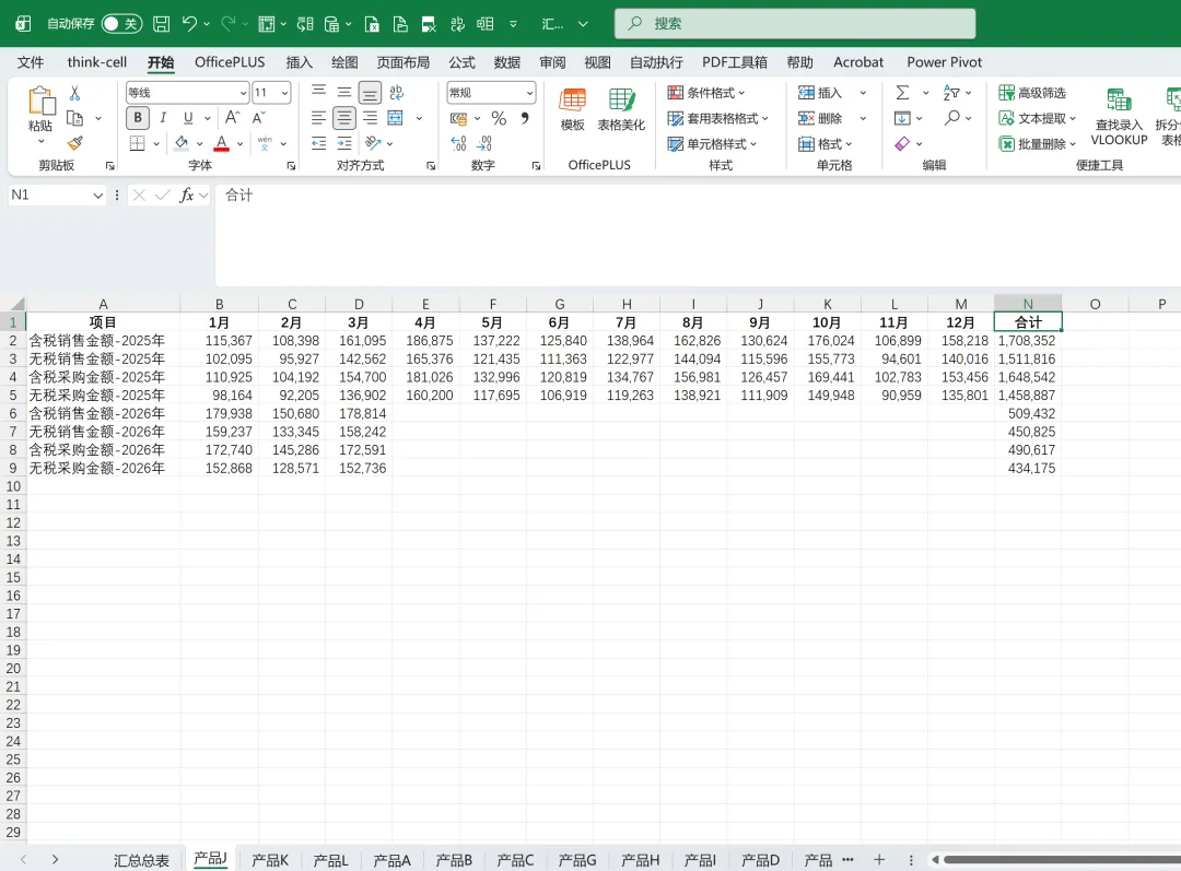 由于2026年取的是当月数,故需要相应调整上述公式中的N列至分析当月,需要每月调整公式