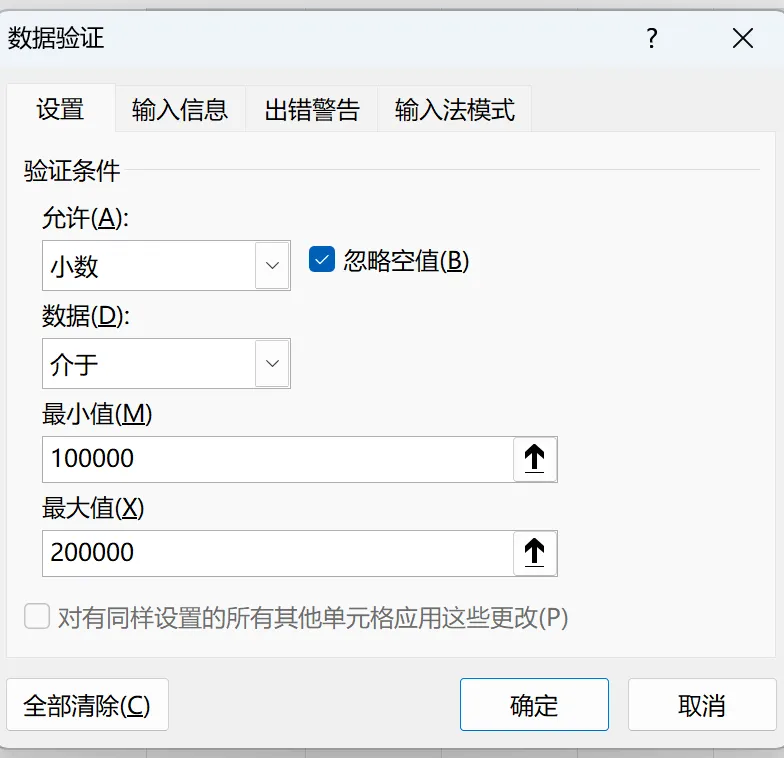 (2)对填写数据设置数据验证