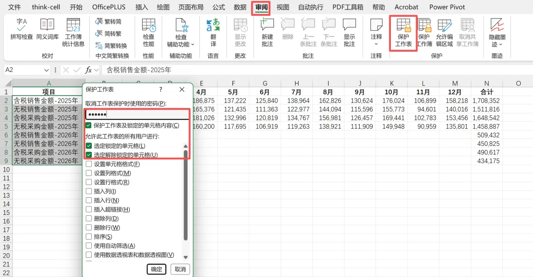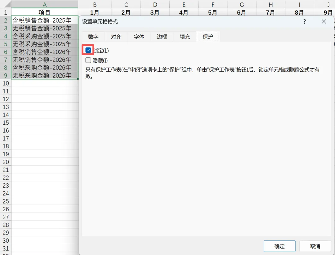 【注意】必须要先设置好其他内容,最后再对工作表进行保护