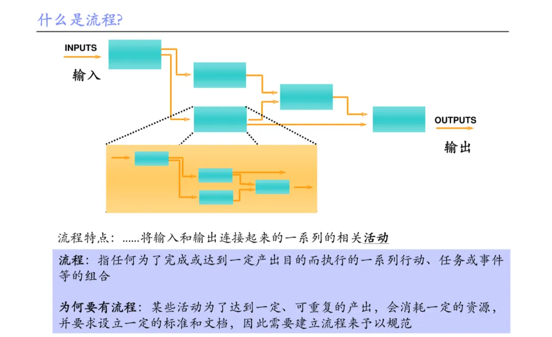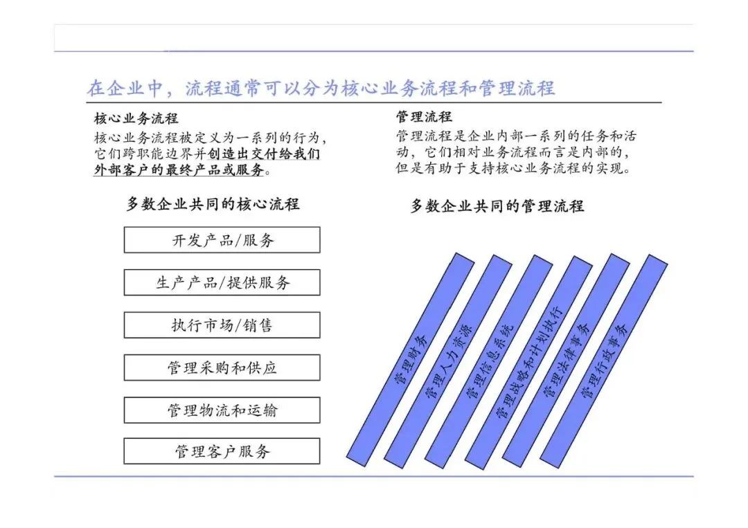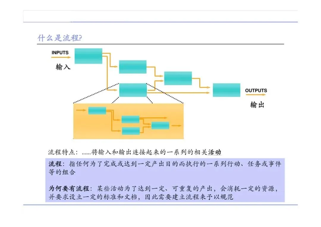 方案将流程界定为“为完成或达到一定产出目的而执行的一系列行动、任务或事件等的组合“,强调其本质是“将输入和输出连接起来的一系列相关活动“。这一定义揭示了流程管理的底层逻辑:任何存在可重复产出、消耗资源并需要标准规范的活动,都需要建立流程。企业常误将流程等同于官僚主义,而IBM方法论恰恰强调流程的存在是为了“达到一定、可重复的产出“,这与数字化时代对运营效率和产品一致性的要求高度契合——流程不是束缚创新的枷锁,而是确保组织能够规模化、稳定化交付价值的操作系统。