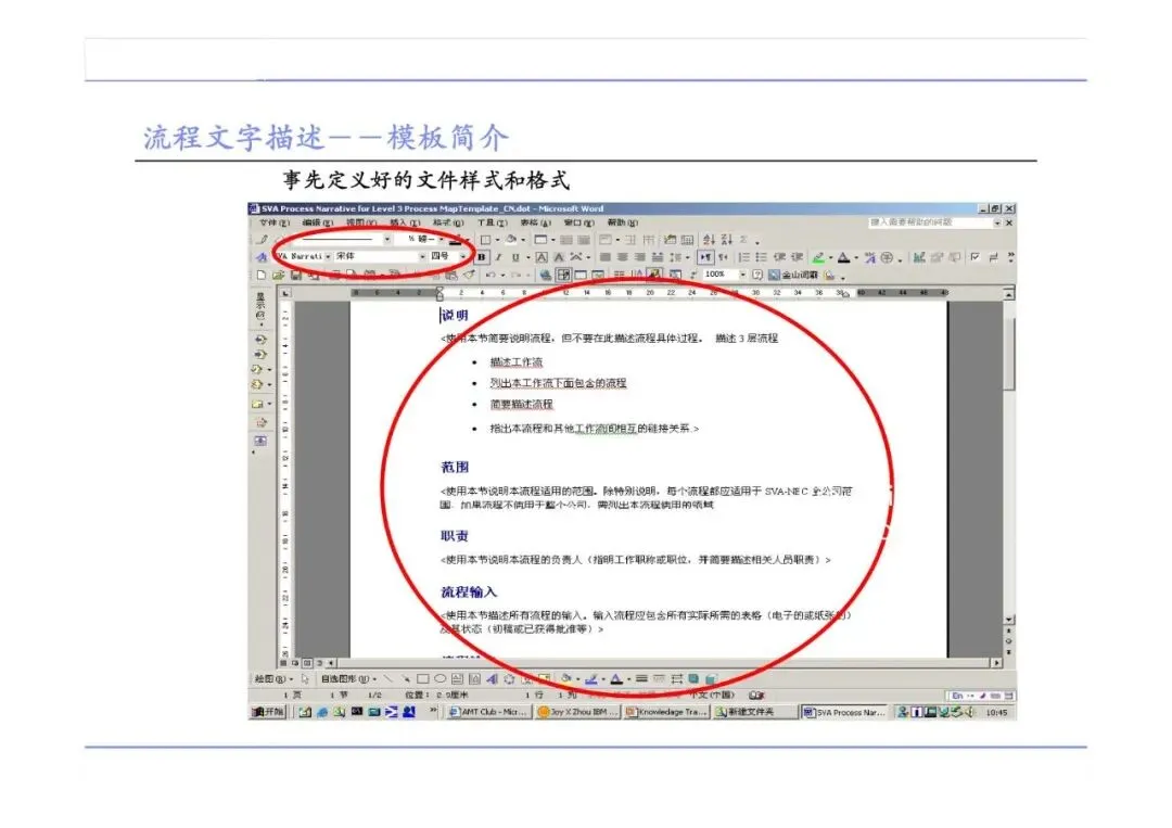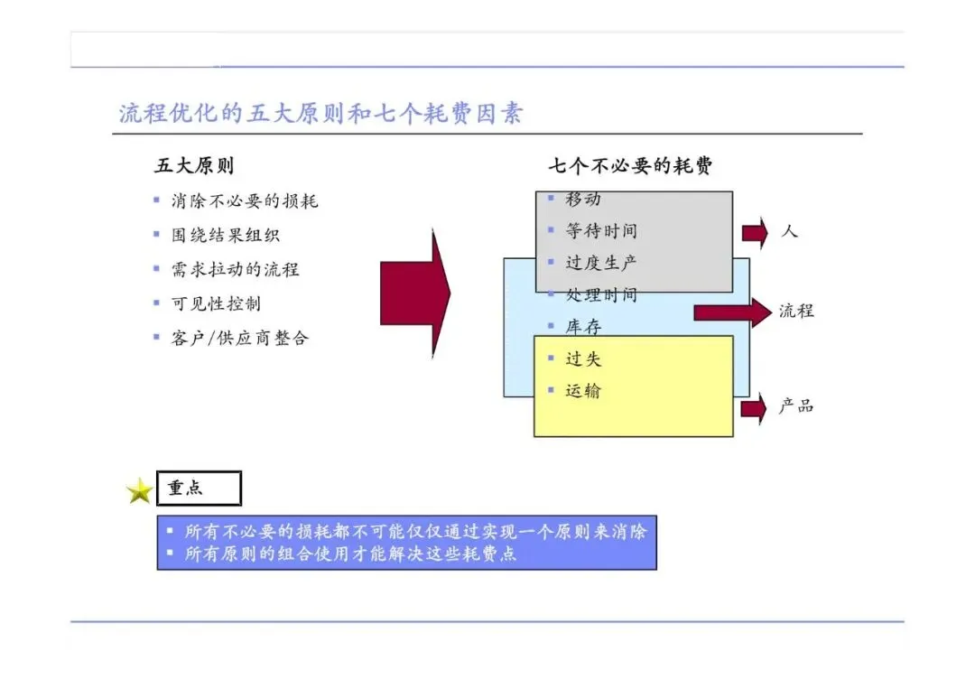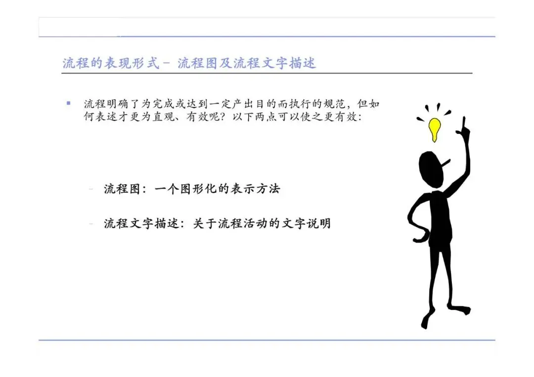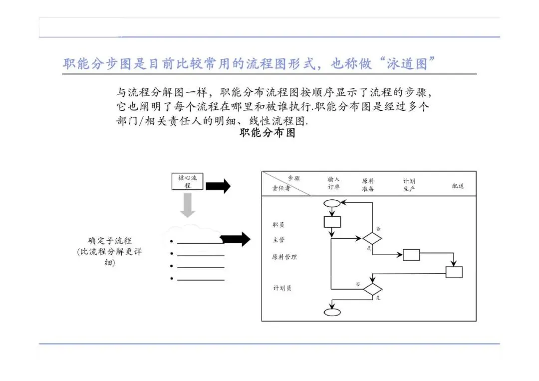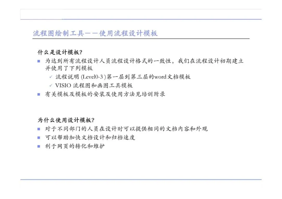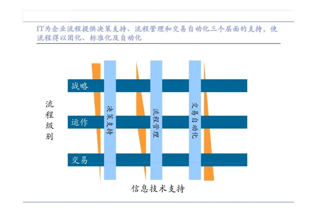方案用清晰的演进路径揭示了管理的本质变革:阶段1是职能导向管理,阶段2是对流程有认知但管理主流仍为职能导向,阶段3是流程导向管理。这不是简单的工具升级,而是管理哲学的根本转变——从“部门本位“到“流程本位“,从“垂直管控“到“横向协同“。方案尖锐地指出“很多时候,人们习惯于基于职能部门的管理而不是基于流程导向的管理“,这种习惯导致流程执行需要“跨越部门界限“时产生巨大摩擦。示意图中红色的跨部门流程线形象地展示了在职能型组织中完成一个端到端流程需要穿越多少部门壁垒。这对数字化转型具有警示意义:数字化系统可以固化流程,但如果管理思维仍停留在职能导向,系统只会变成部门割据的数字化堡垒。真正的流程导向管理需要“打破部门本位、建立跨职能部门的从流程出发的管理理念“,这正是数字化转型中组织变革最难但最关键的部分。