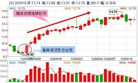 3 、“看涨吞没形态”。此种K线图形出现在一轮明显的下跌趋势中,如果吞没形态具有下面3种参考性要素和特征,那么它们构成重要反转信号的可能性将大大地增强。1、在看涨吞没形态中,第一天的实体非常小,而第二天的实体非常大。这种情况可能说明原有趋势的驱动力正在消退,而新趋势的潜在力量正在壮大;2、第二天的实体向前吞没的实体不止一个;3、看涨吞没形态出现在超长期的或非常急剧的市场运动之后。