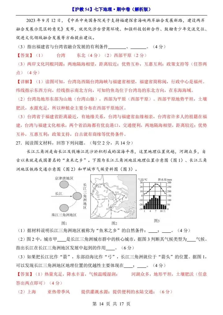 今日分享【沪教54版】26新七下地理期中试卷(答案+答题卡)完整电子版可打印!高清可打印,每日轻量练习,拒绝无效刷题,用系统化资料筑牢学科基础,让假期成为提升的黄金期,开学轻松领跑。