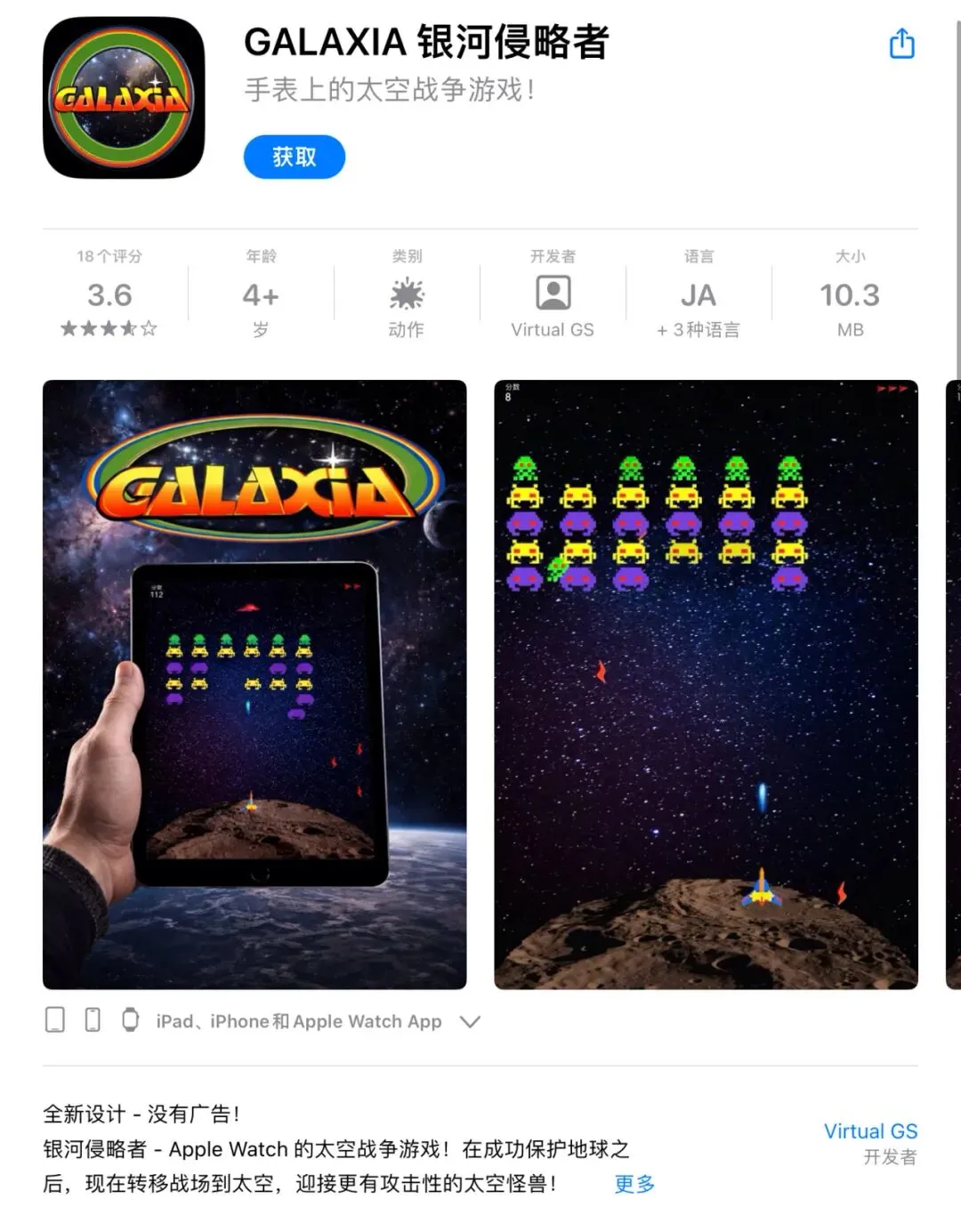 《GALAXIA银河侵略者》是跨设备太空射击游戏,可在手表/手机/平板玩,无广告,击退外星入侵者。