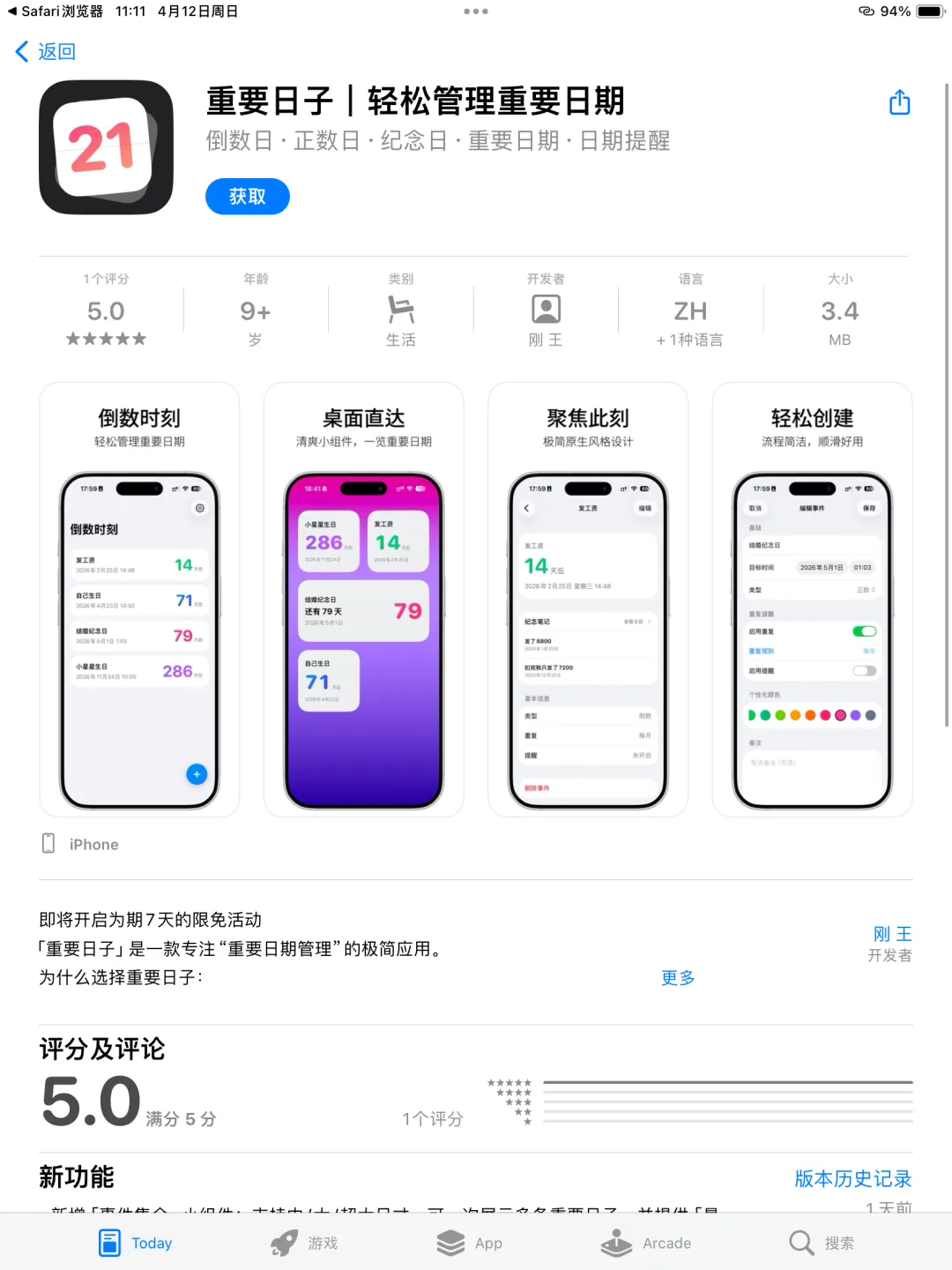 《重要日子》除了记录倒数日、纪念日,还能设置日期提醒,支持桌面小组件快速查看,界面风格也能自定义,操作很轻便。