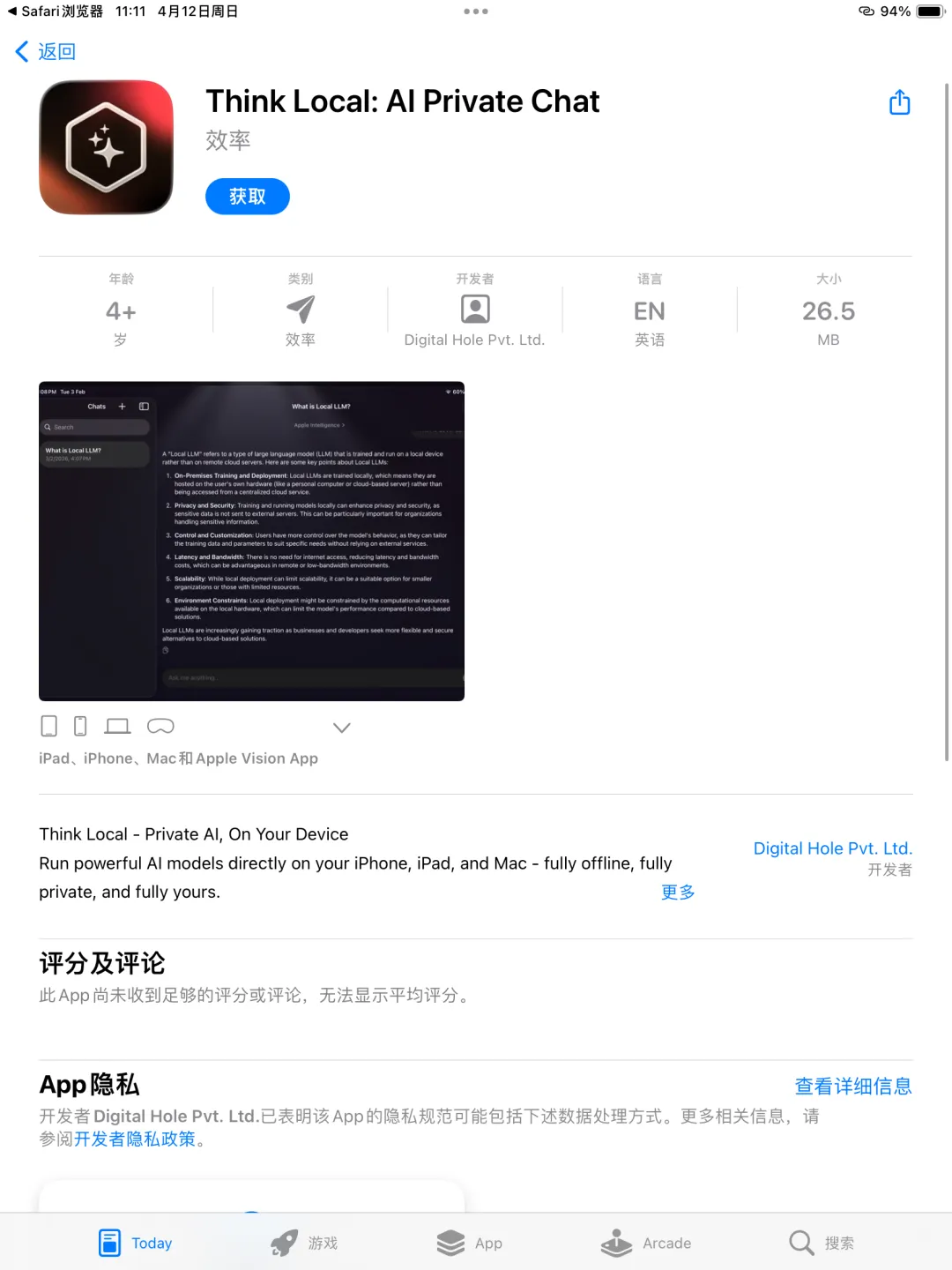 《Think Local》是本地AI聊天工具,可在设备端离线运行AI模型,保障隐私安全。