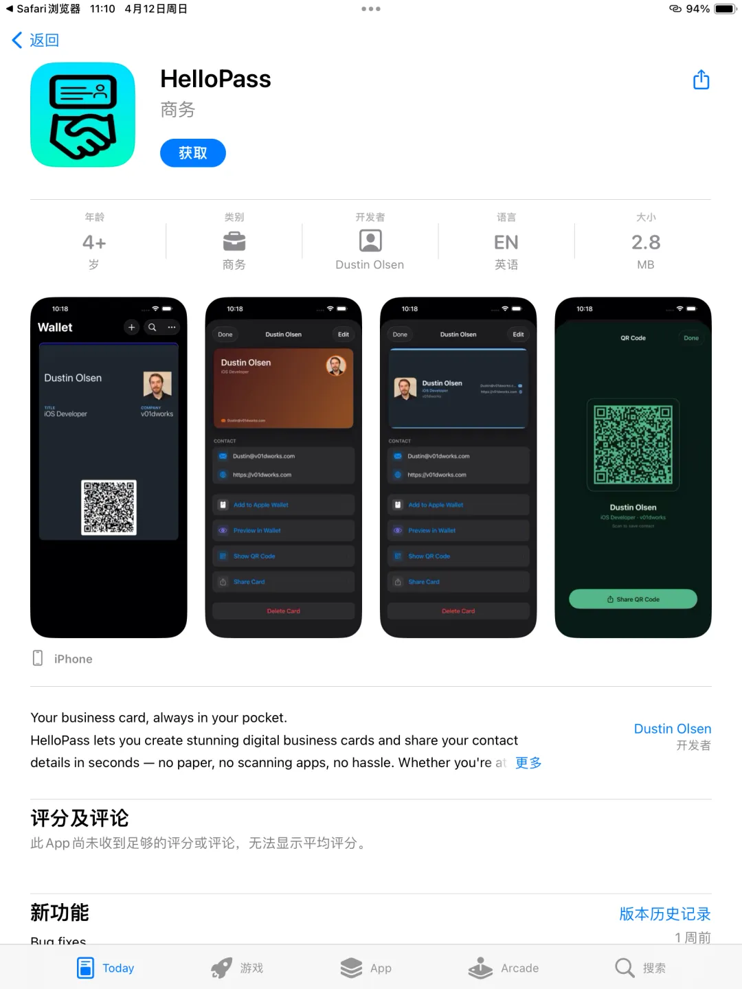 《HelloPass》是电子名片工具,可创建精美数字名片,秒速分享联系方式,无需纸质名片。