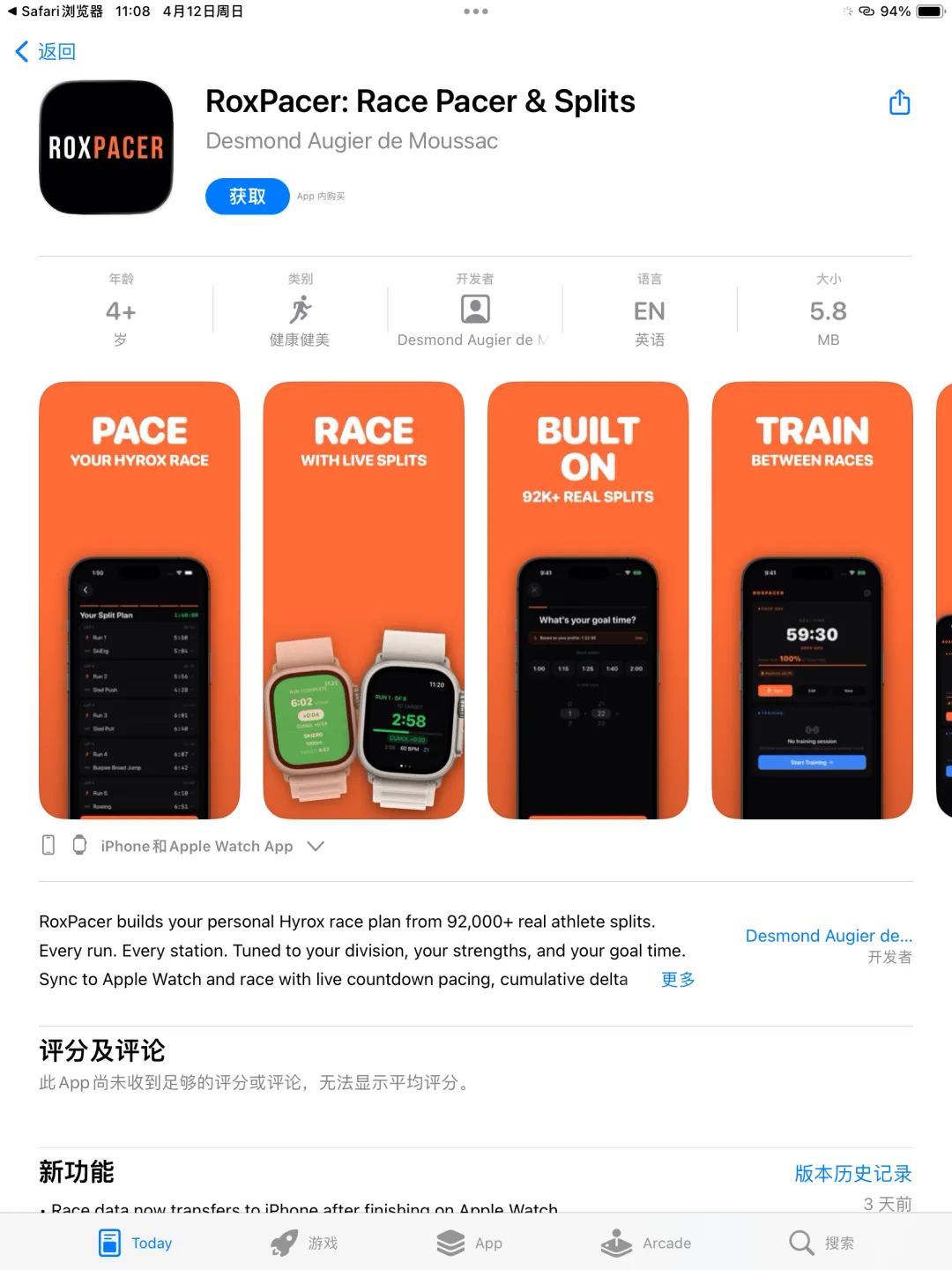 《RoxPacer》是Hyrox赛事规划工具,基于运动员数据生成个人赛程,同步手表实时控速。