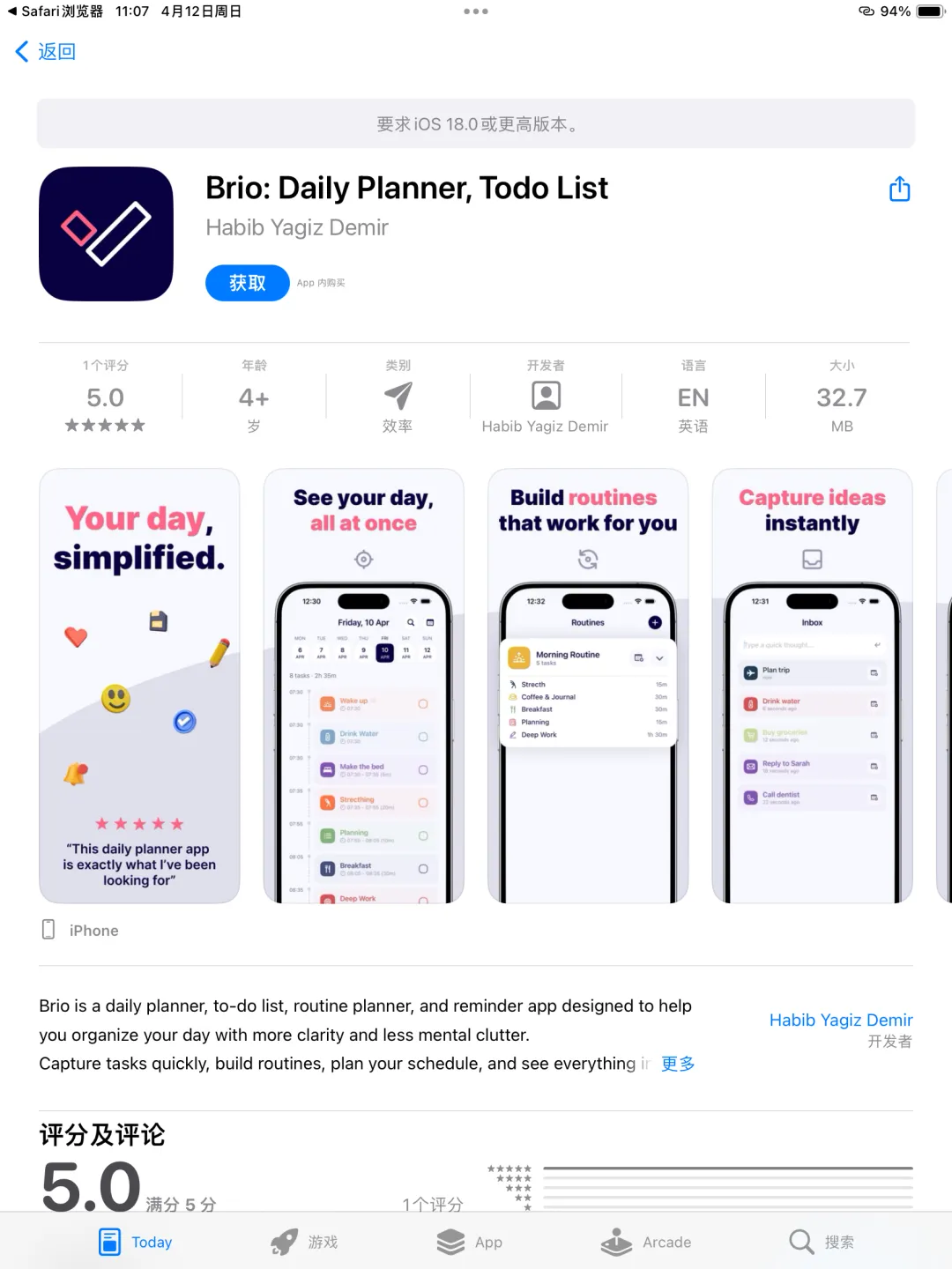 《Brio》是日程管理工具,可规划日程、列待办、建习惯,帮理清每日安排。