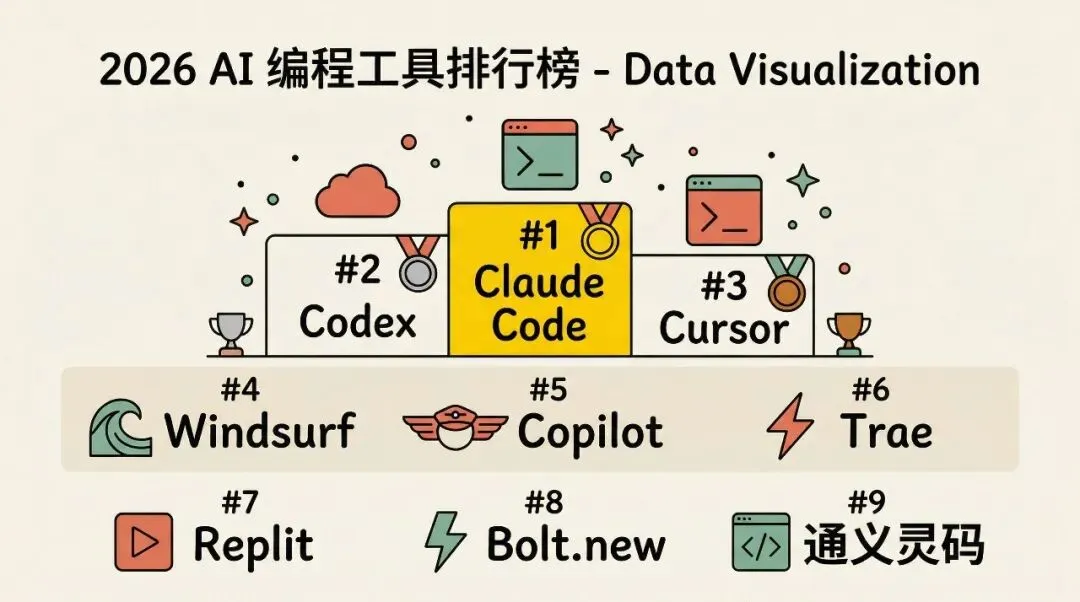 AI 编程工具这个赛道现在卷得飞起,几乎每个月都有新产品出来或者老产品大更新。我这个排名反映的是 2026 年 4 月的体感,过几个月可能又会变。