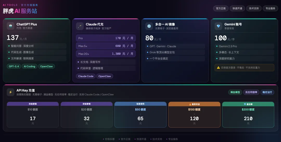 胖虎AI小店上线了。提供以下服务: