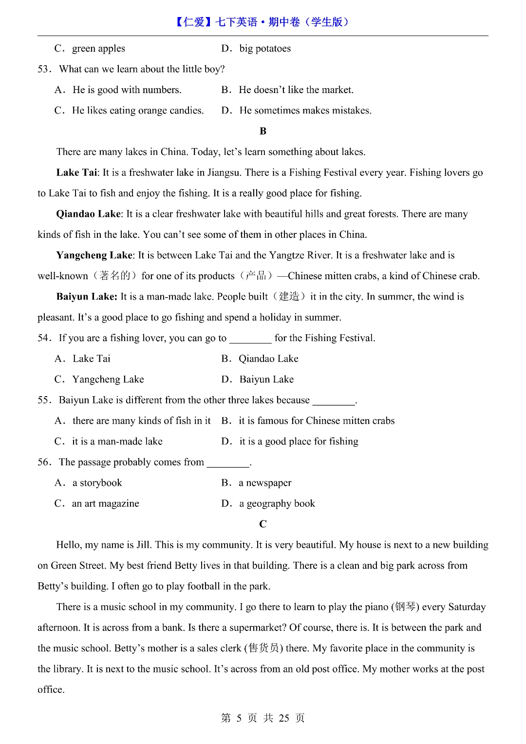 26年春新七年级下册仁爱版英语《期中考试测试卷》含答案解析‖高清可打印