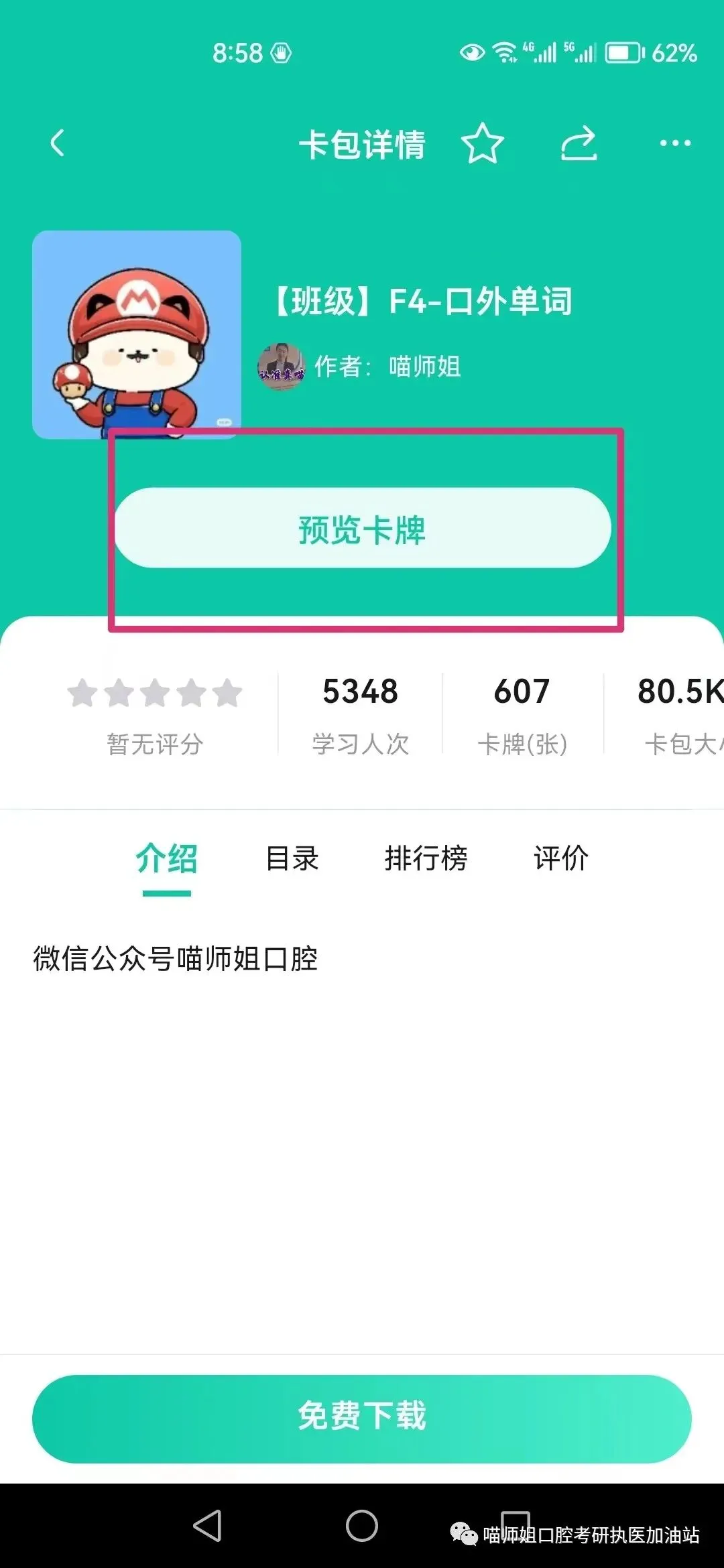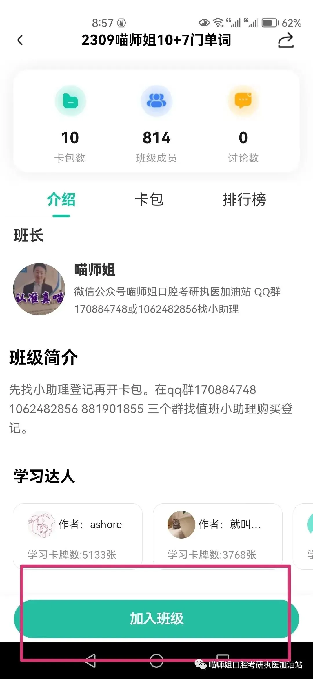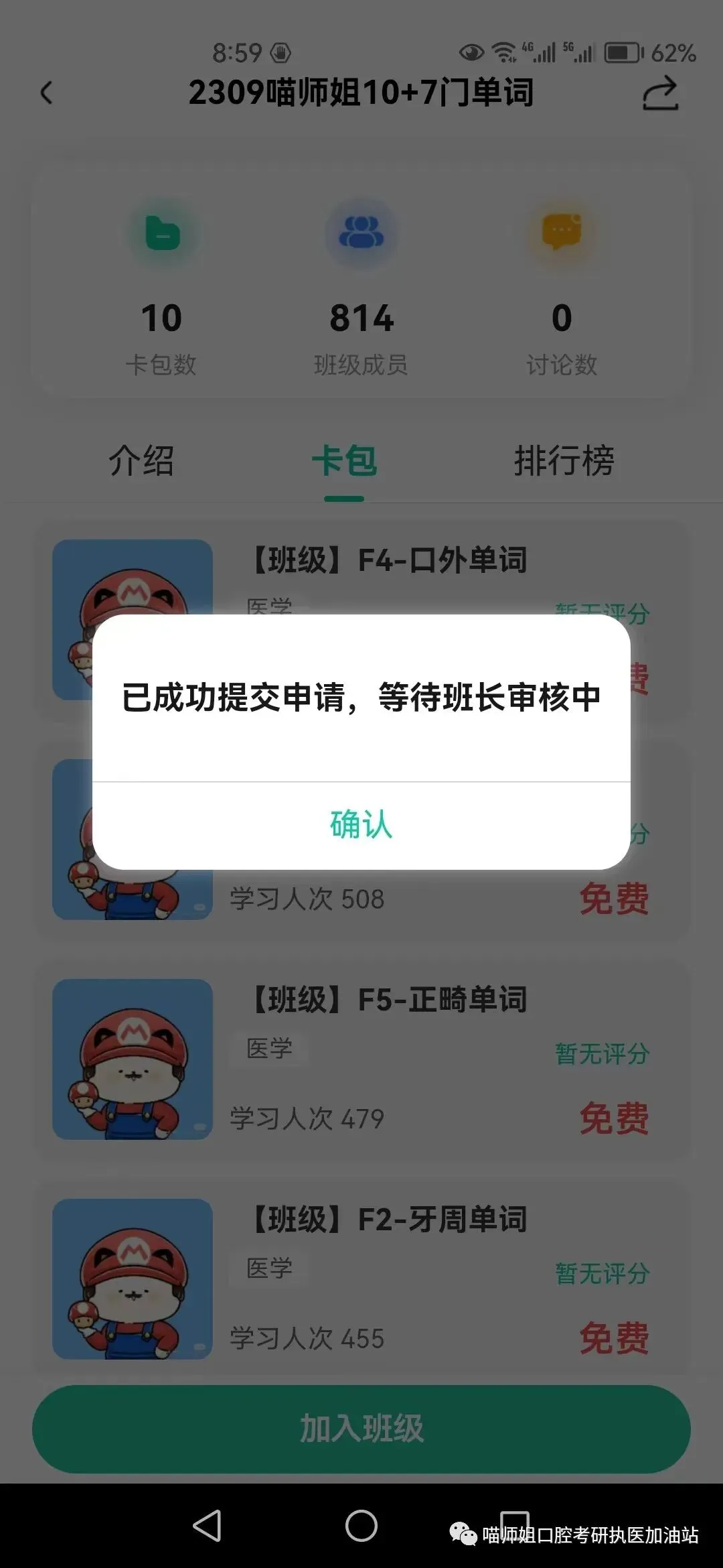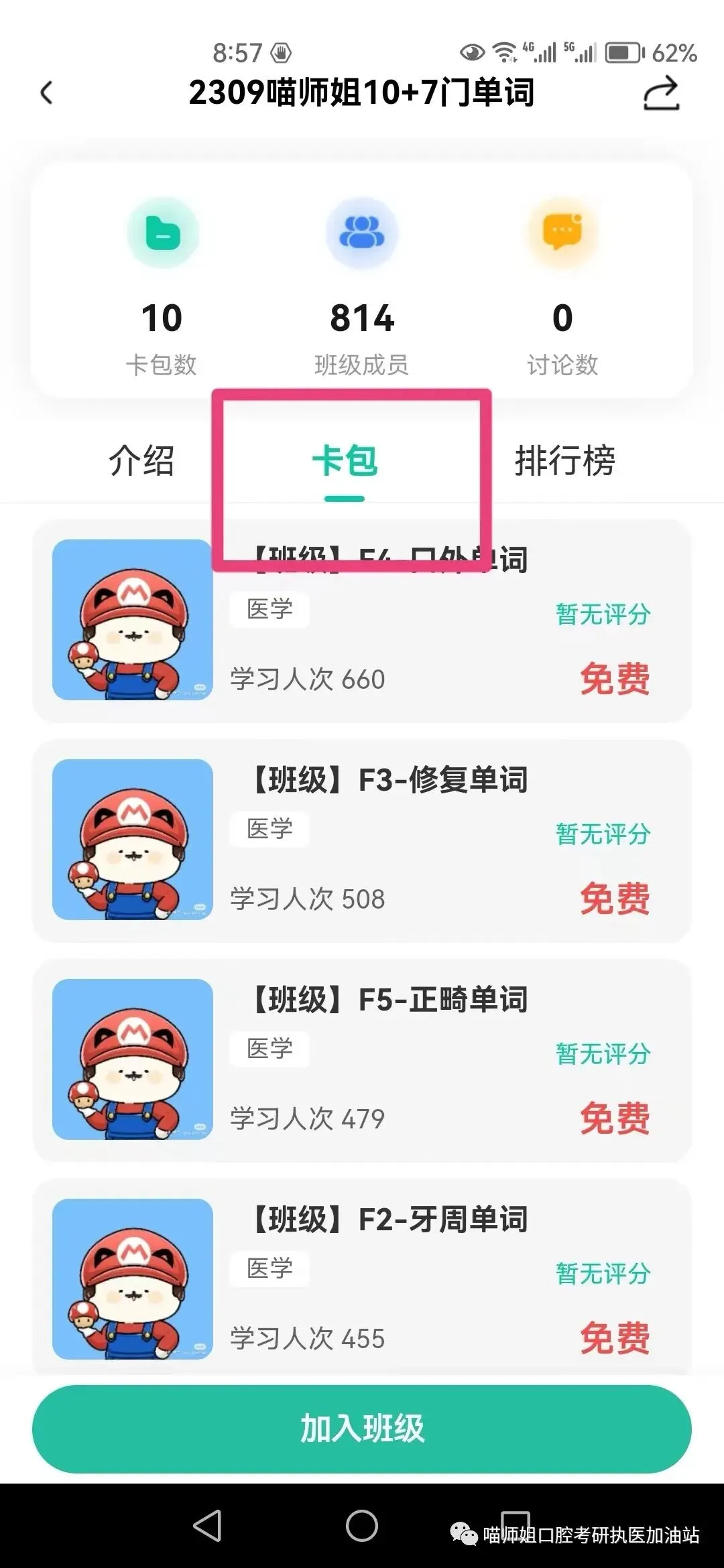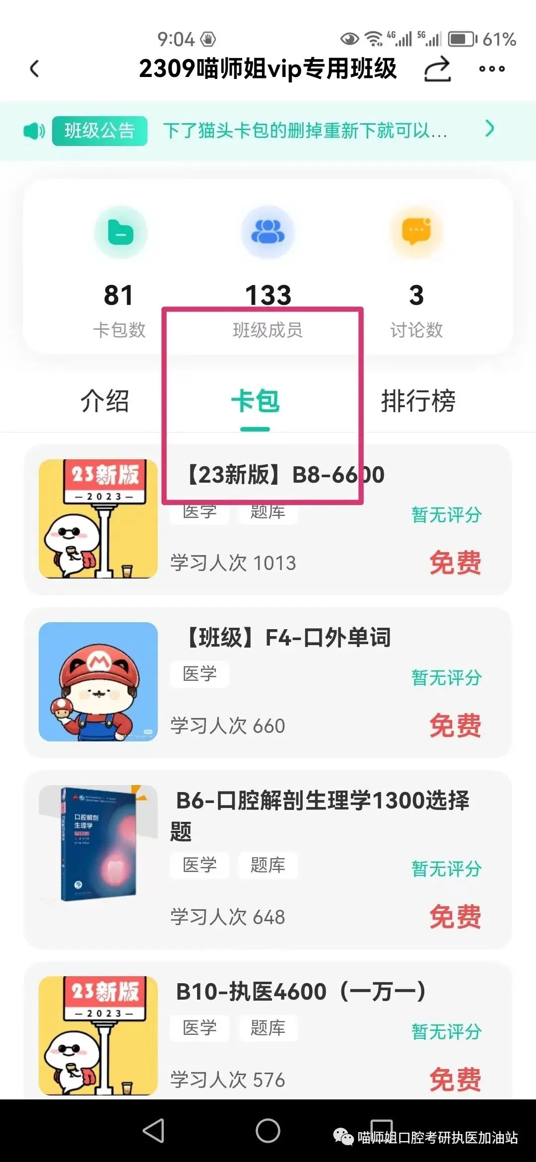 次日进入了班级,即可免费下载所有班级内卡包,无需APP再付费