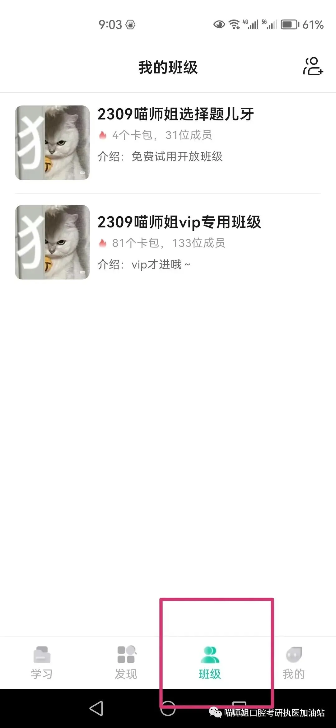 切到班级页面,可以看到自己已经加入的班级