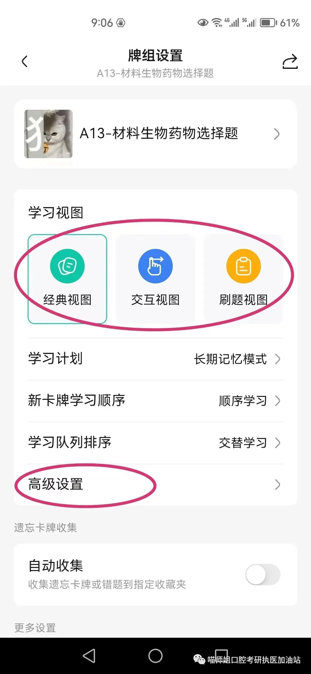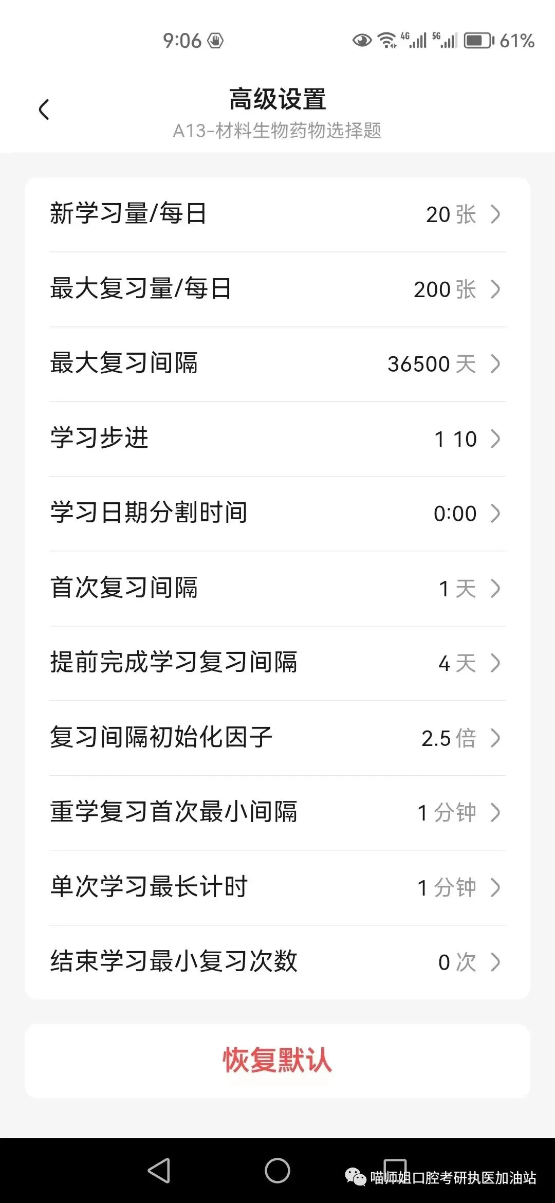 高级设置可以设置具体学习数量