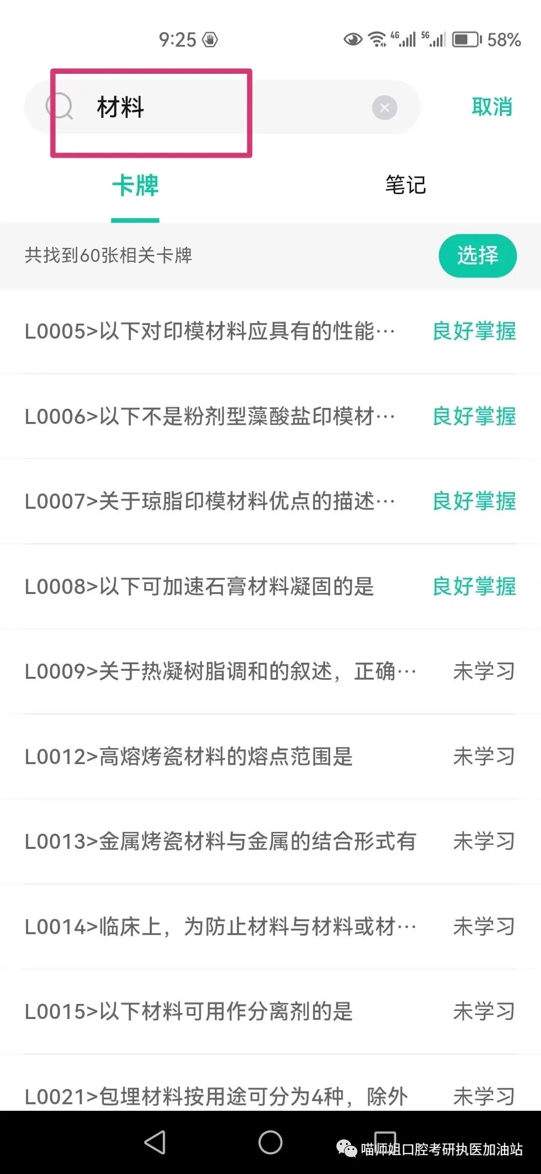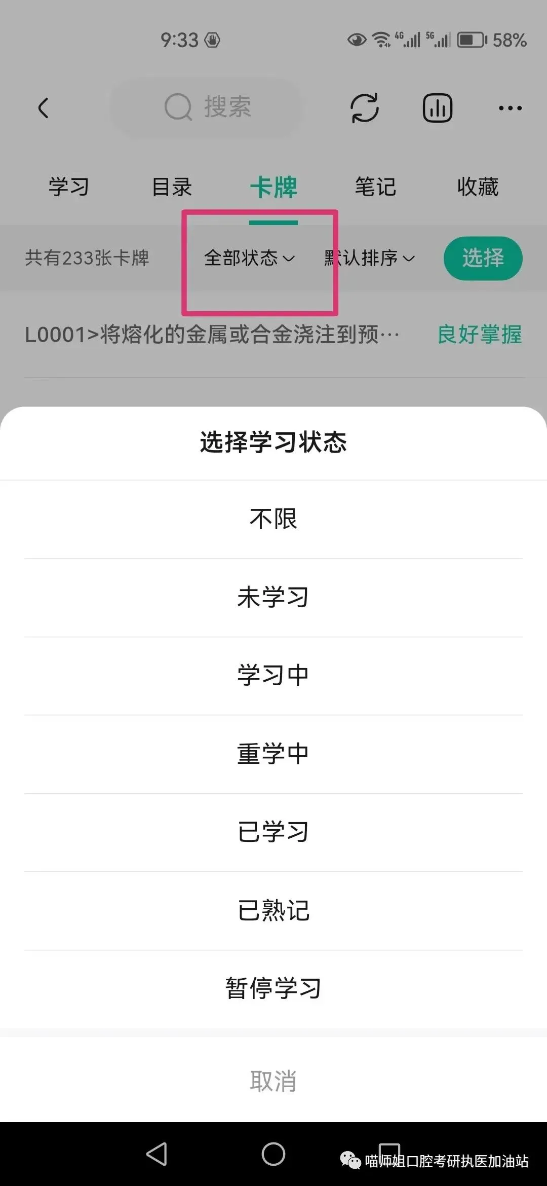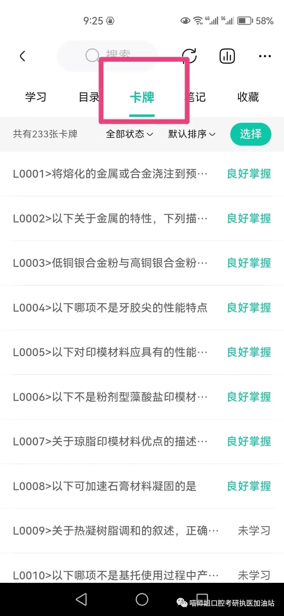 或者按类别选择未学过或已学卡牌