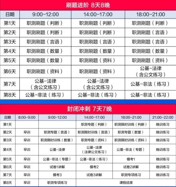 笔面班:8天8晚刷题进阶+7天7晚封闭冲刺 -