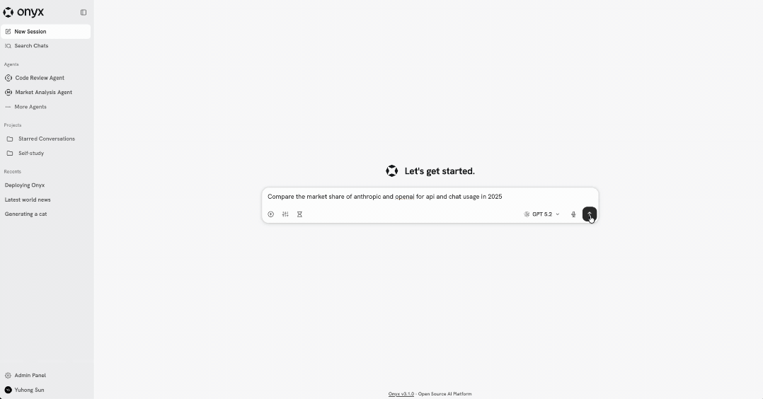不管你用的是 GPT、Claude、Gemini、Llama 还是开源模型,onyx 都能接入,统一聊天。