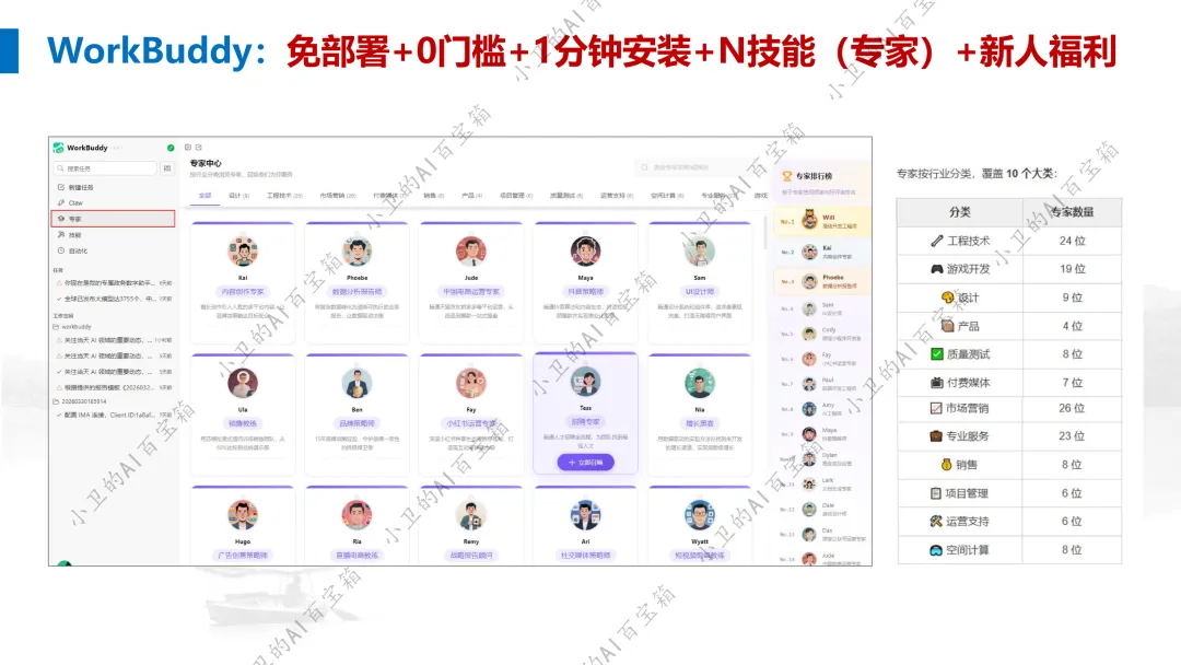 WorkBuddy 有一个很有特色的功能——专家中心。