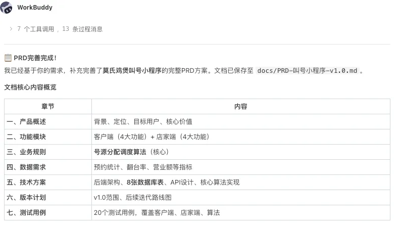 WorkBuddy(write-a-prd) → 生成PRD文档