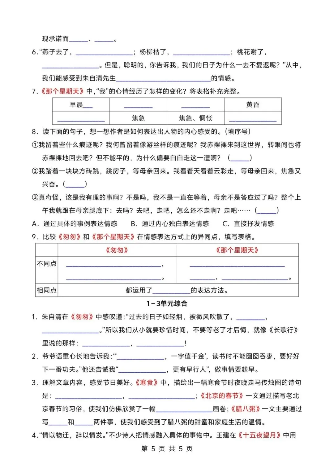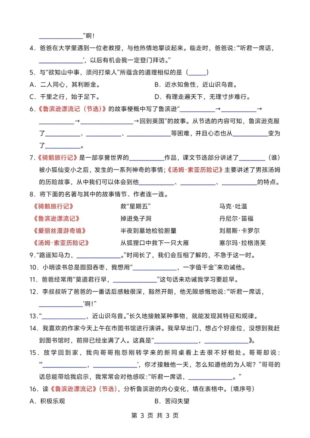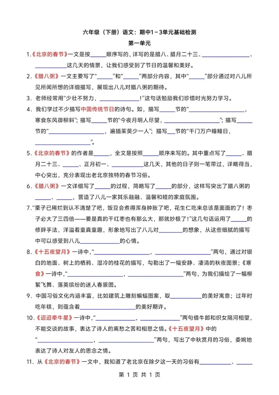 26春人教部编版六下语文期中测试一至三单元检测卷;电子版可打印