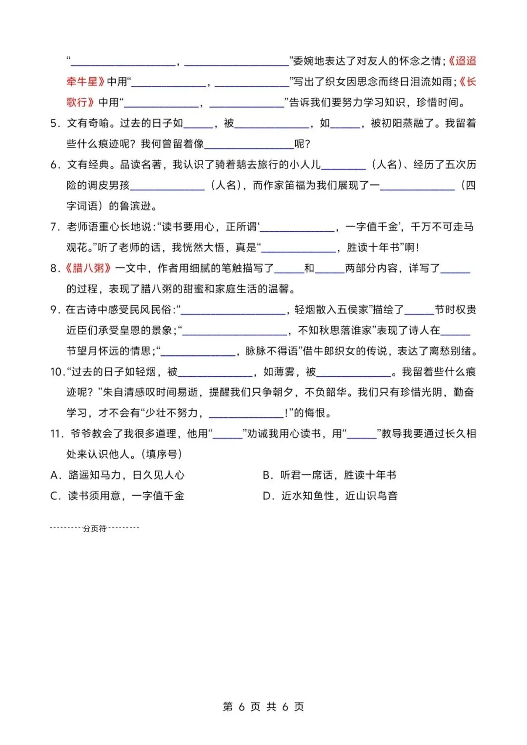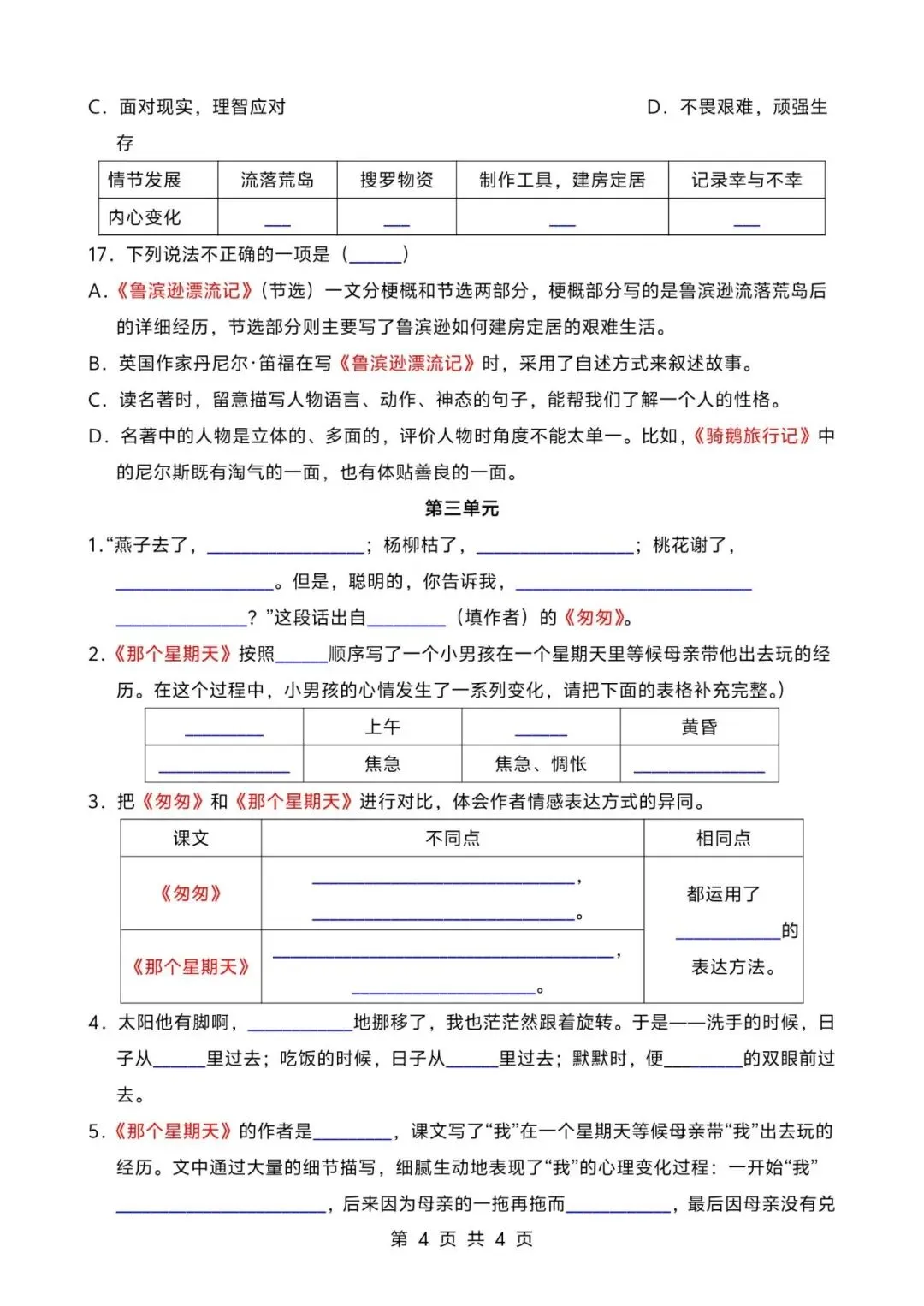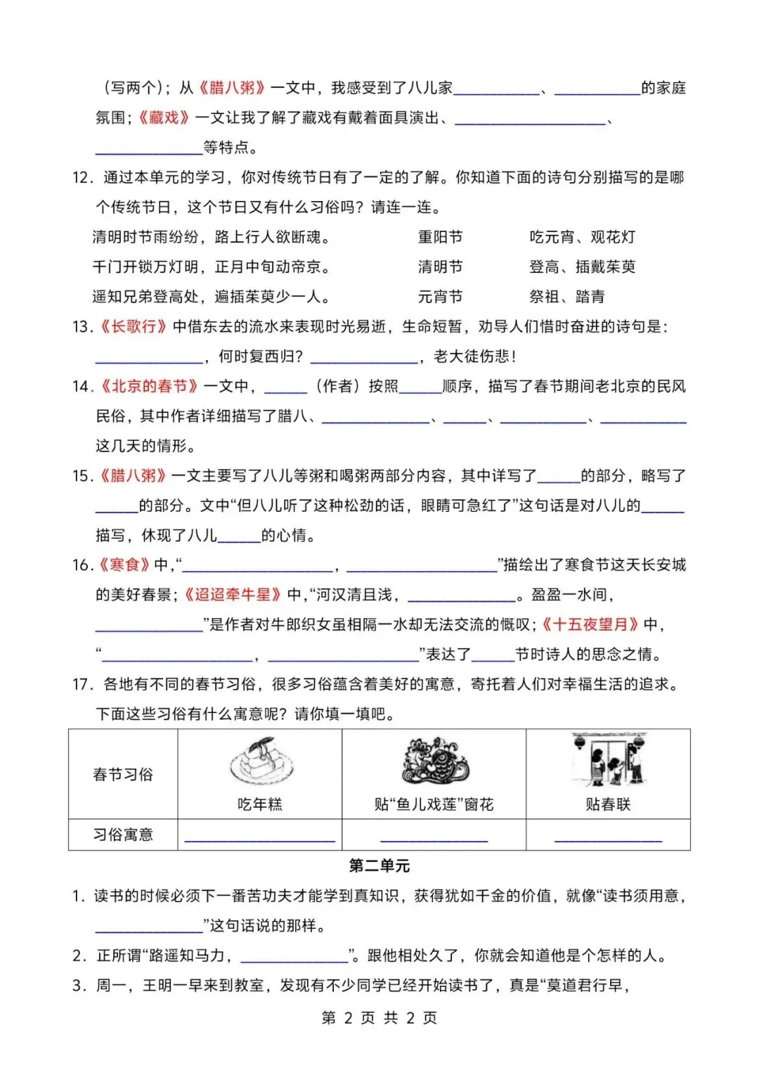 26春人教部编版六下语文期中测试一至三单元检测卷;电子版可打印