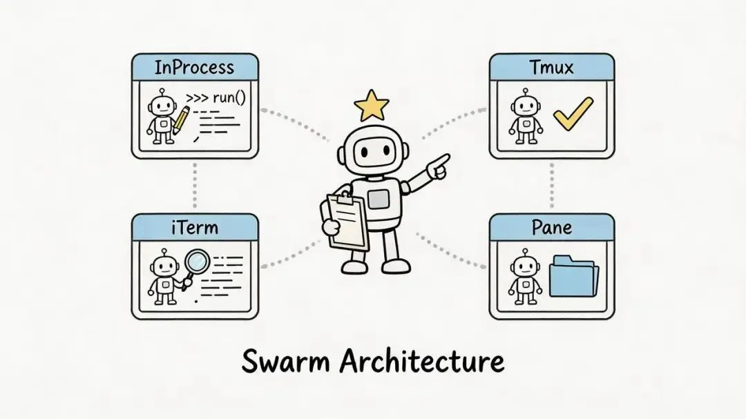 TmuxBackend:在 tmux 面板里跑,你能看到每个代理的终端。