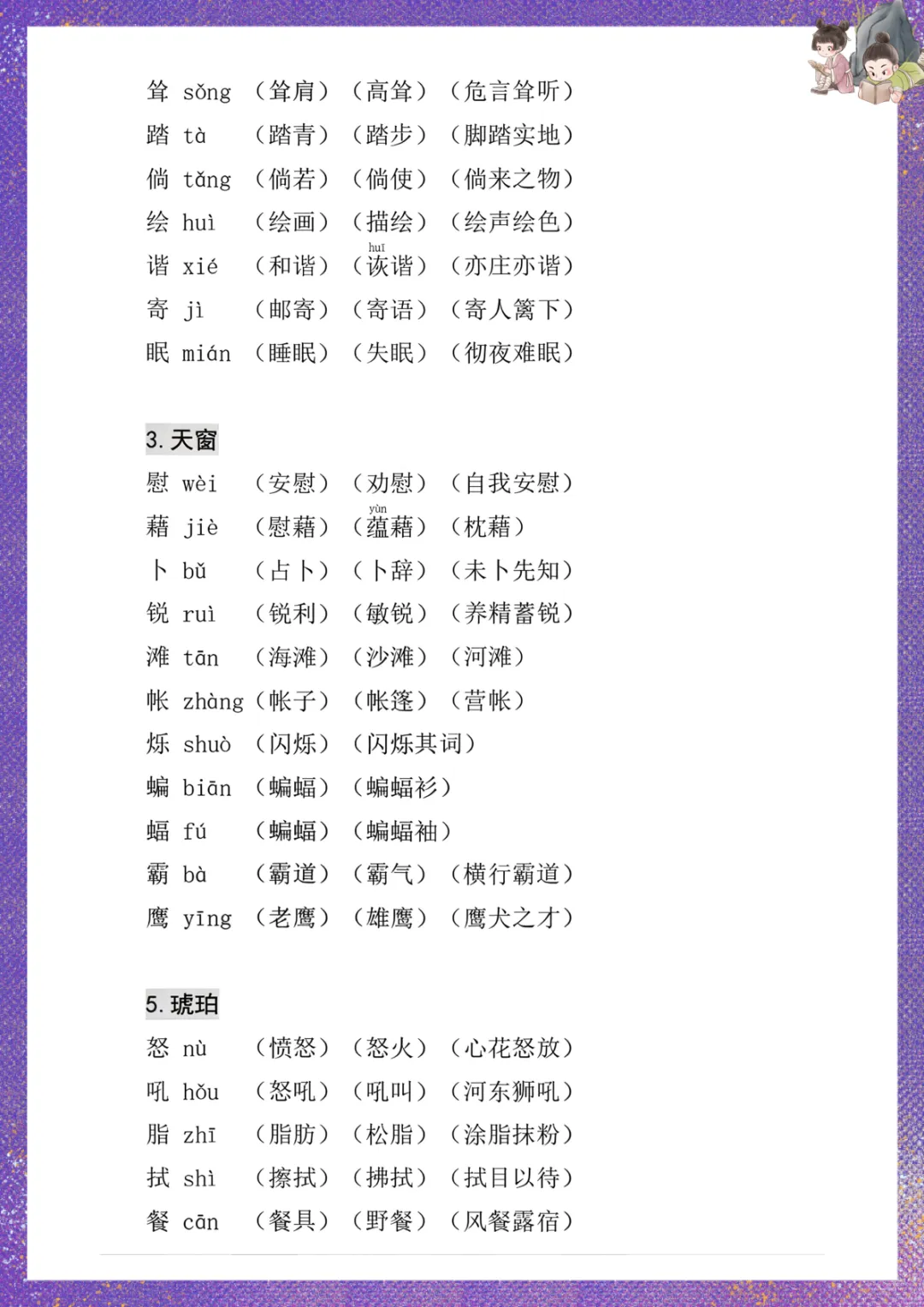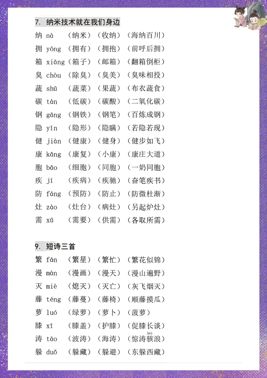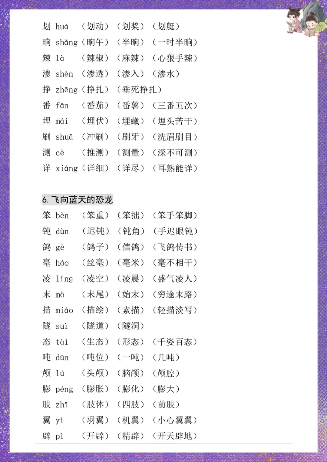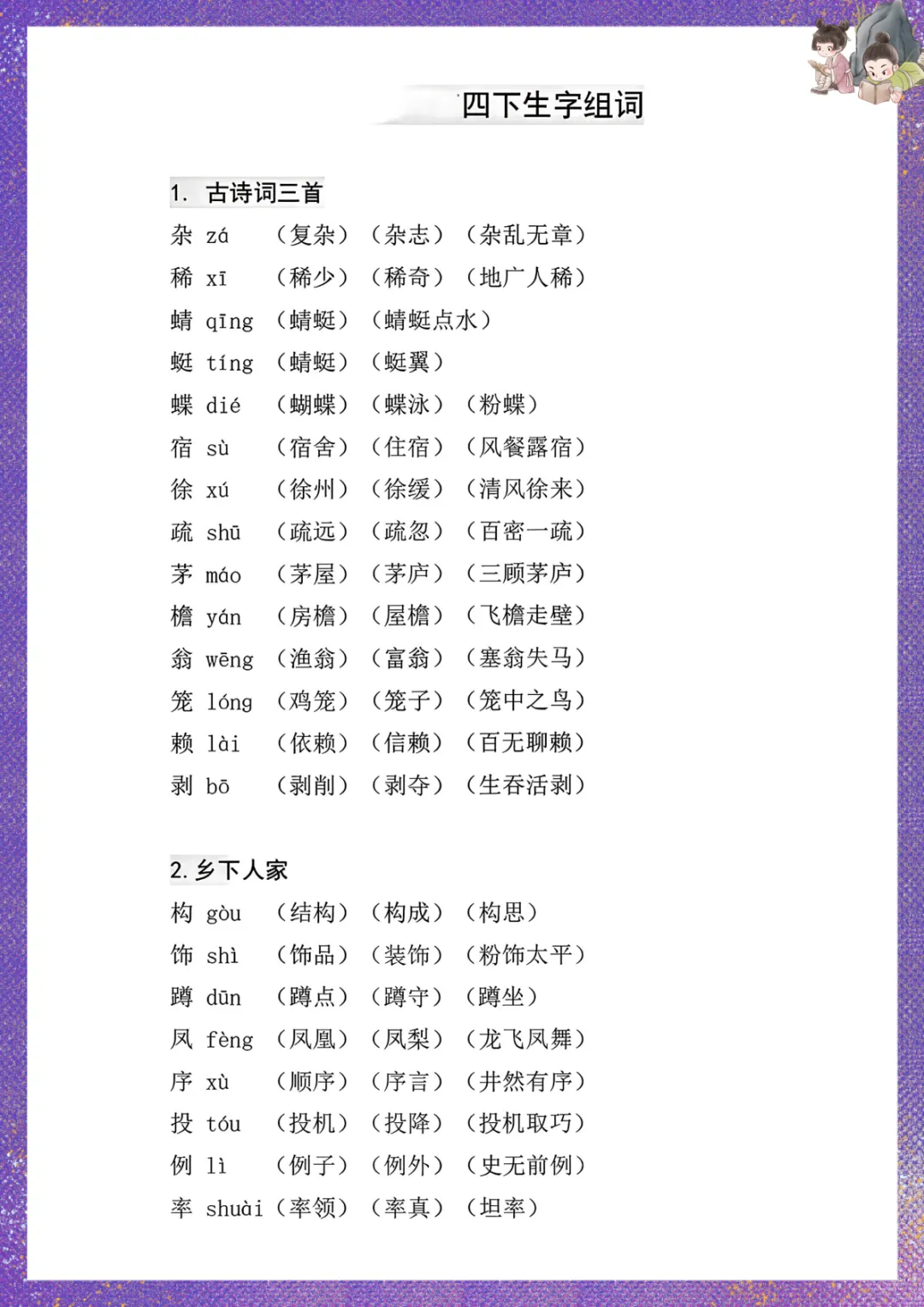 部编版四年级下册语文:全册《生字注音及组词》电子版可下载打印