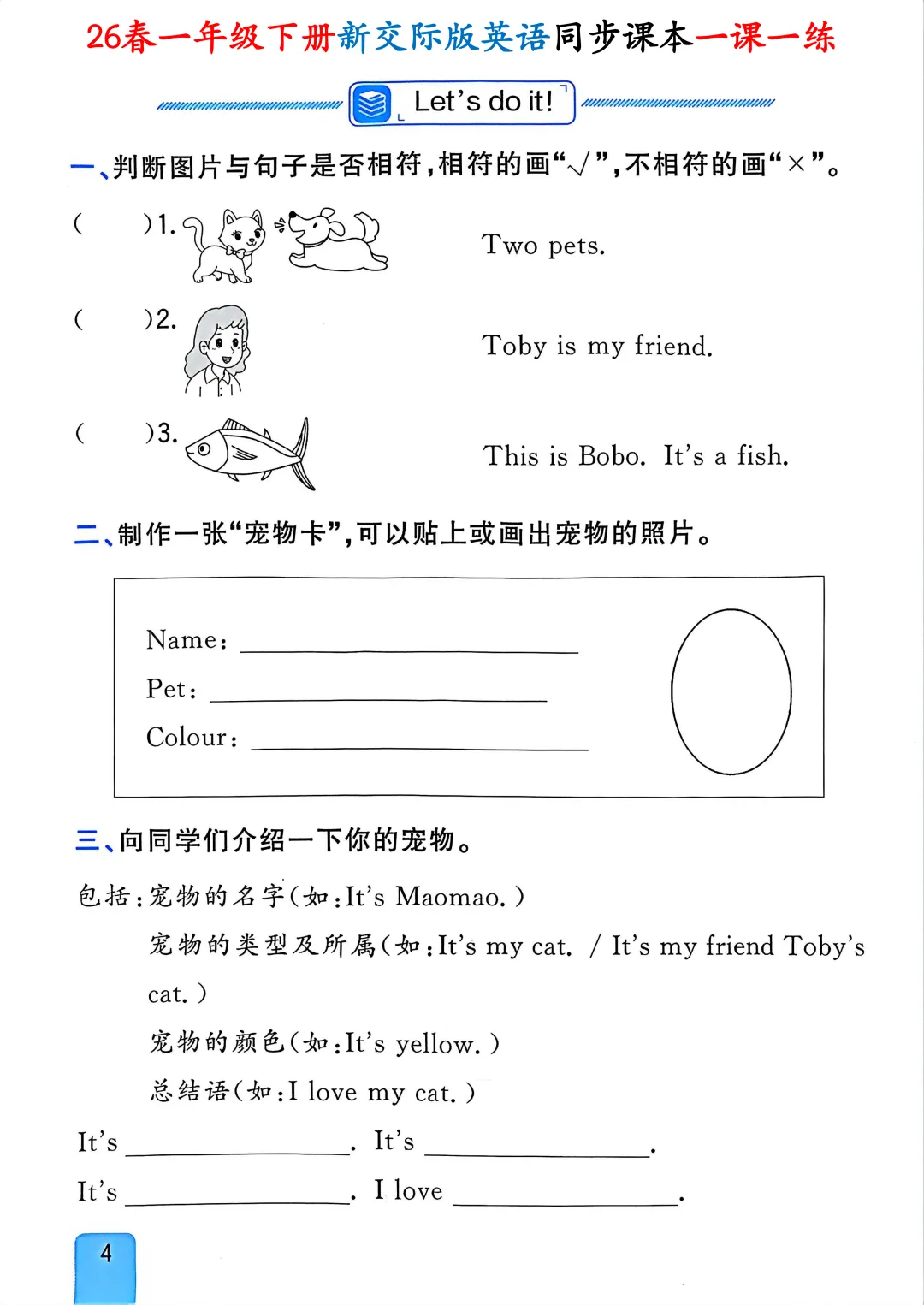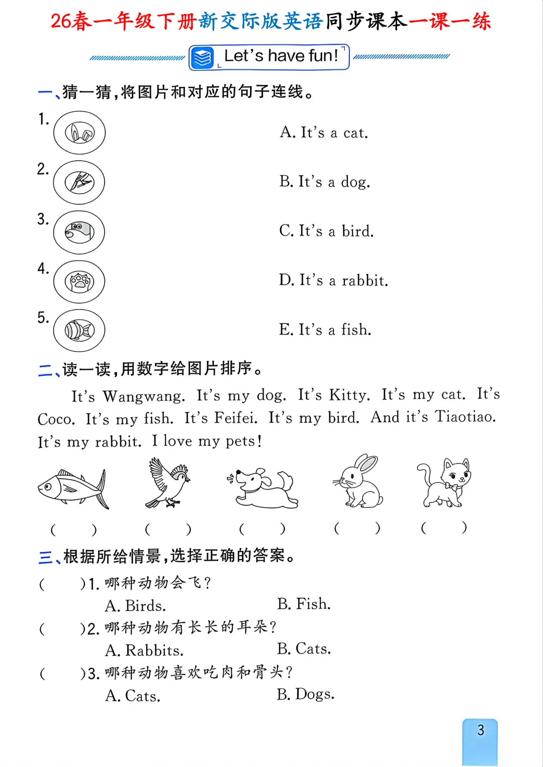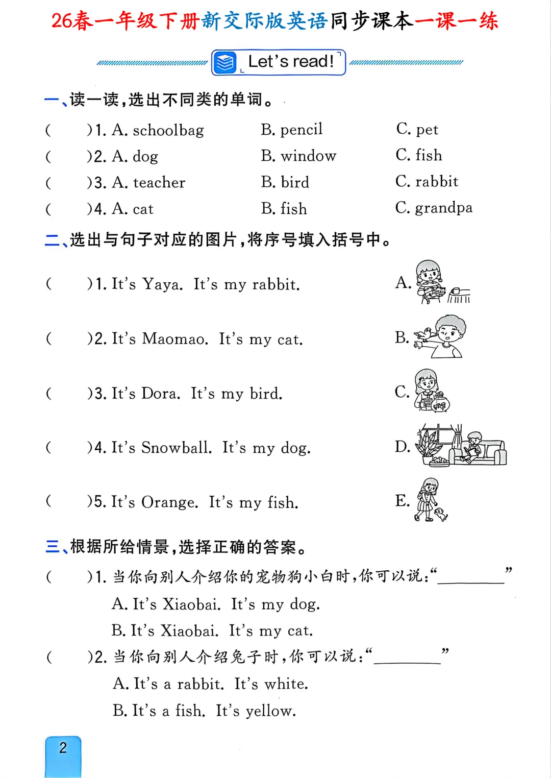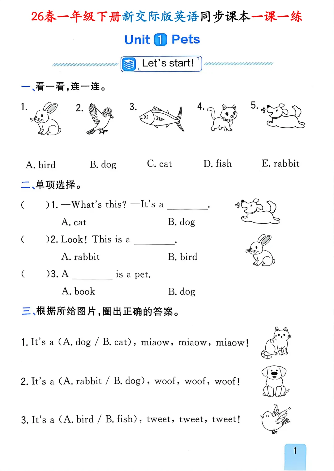 【小学资料】26春一年级下册新交际版(外研版一起点)英语《同步课本一课一练含答案》完整可下载打印