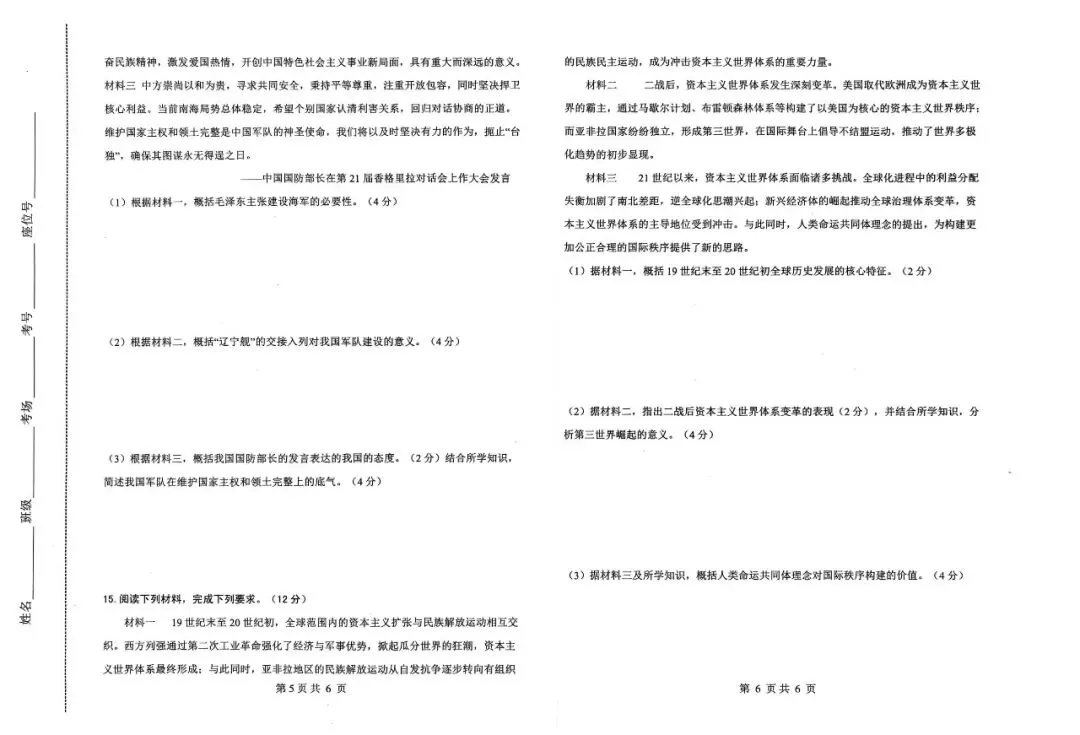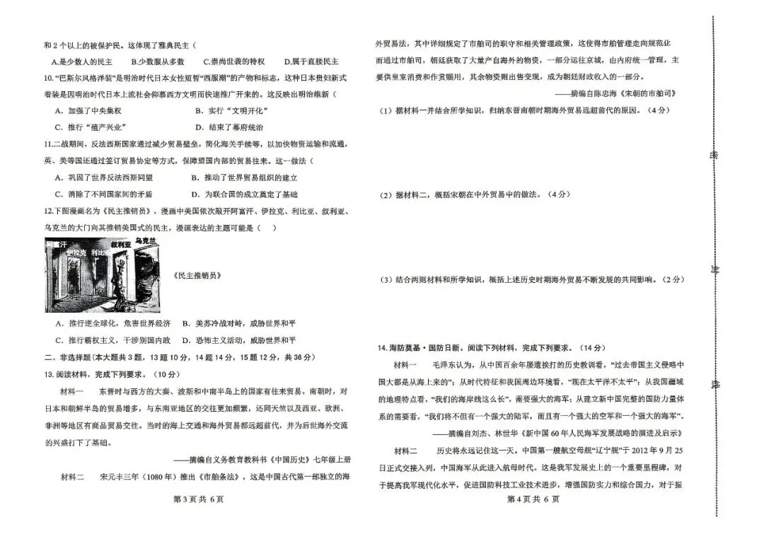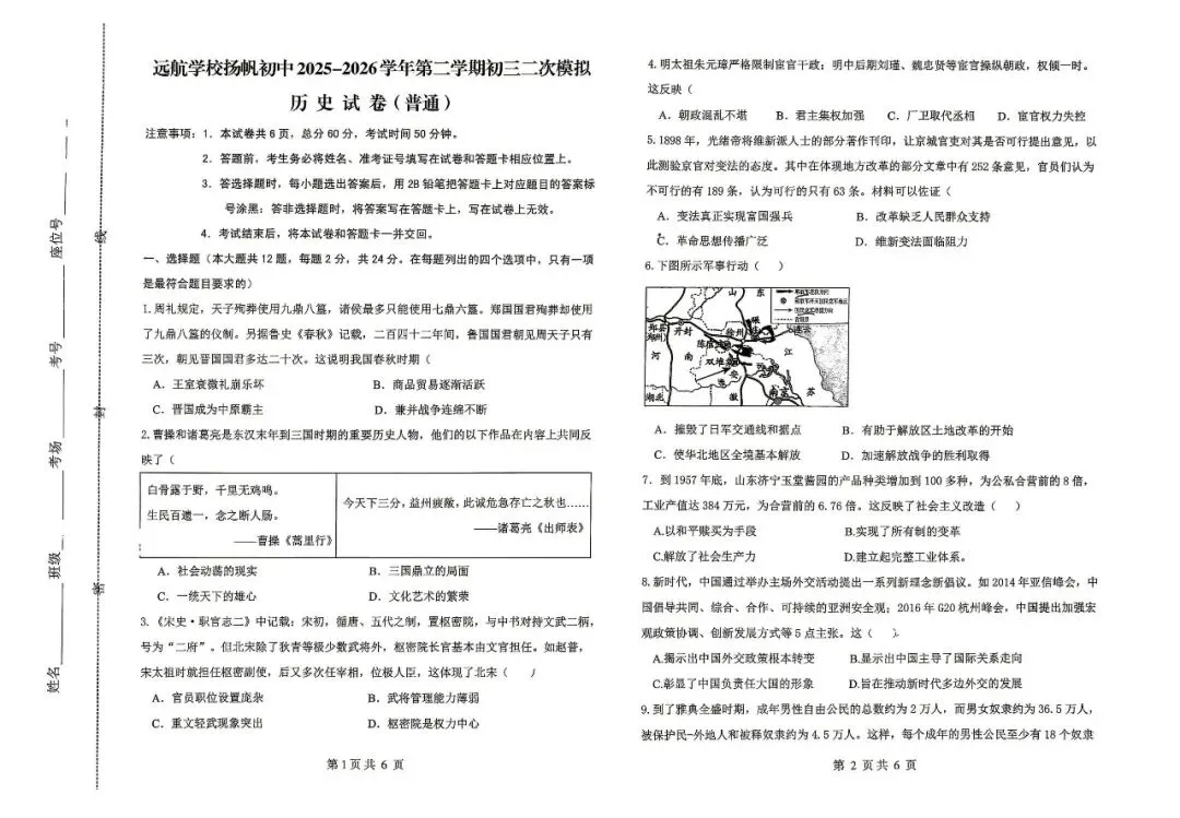 邯郸市扬帆中学九下二模【历史】卷-可打印