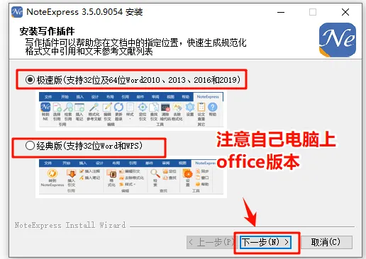 第九步:点【下一步】。(此处注意自己电脑上安装的办公软件的版本。)
