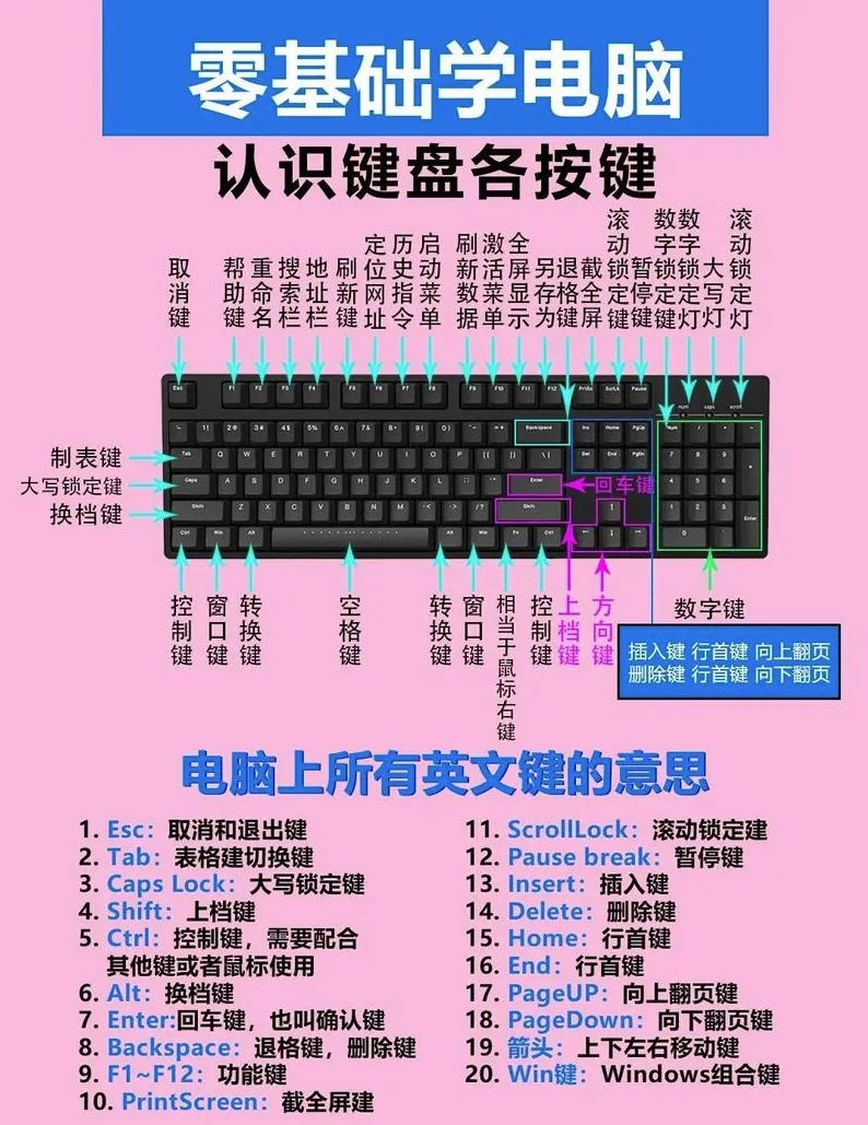 Scroll Lock:极少用,原用于锁定滚动条(部分Excel中有效)。